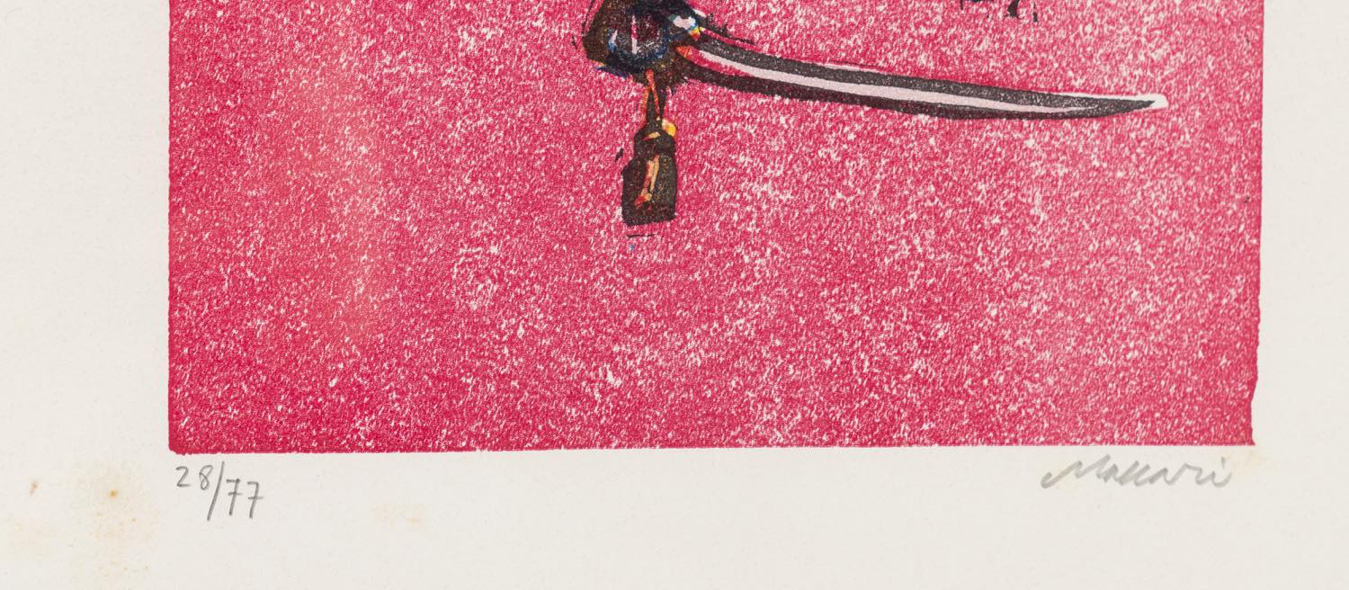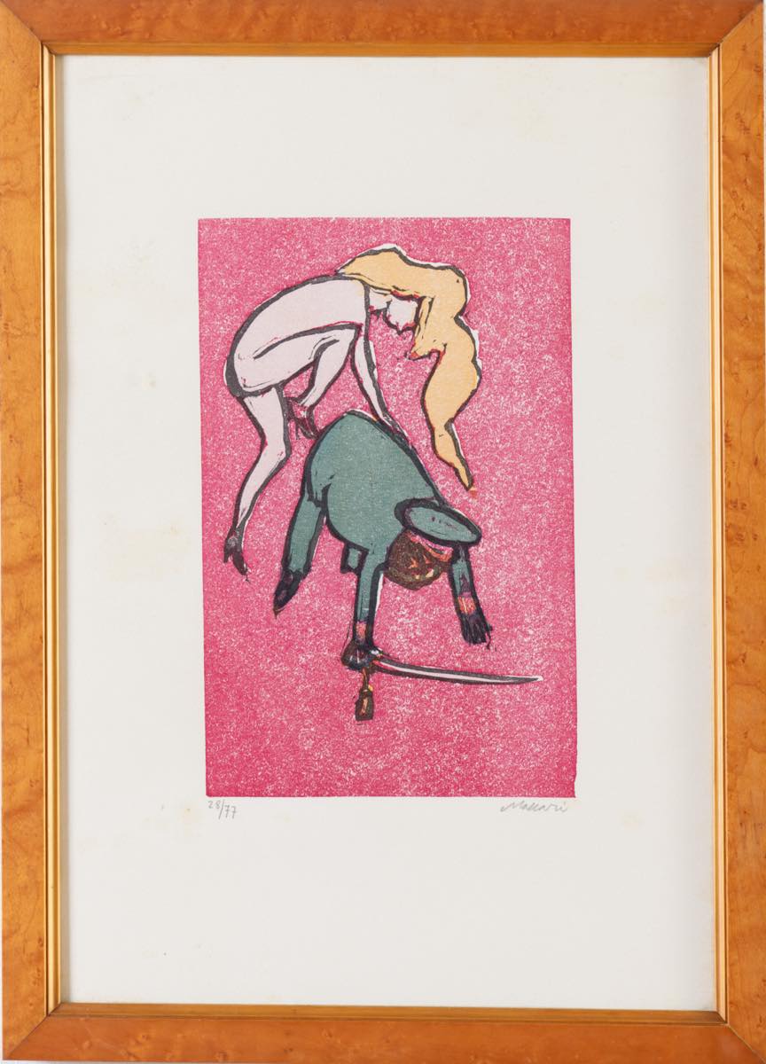 Litografia a colori su carta, firmata in basso a destra, numero di tiratura in basso a sinistra 28/77, Lastra H cm 30x19 (lievi difetti)