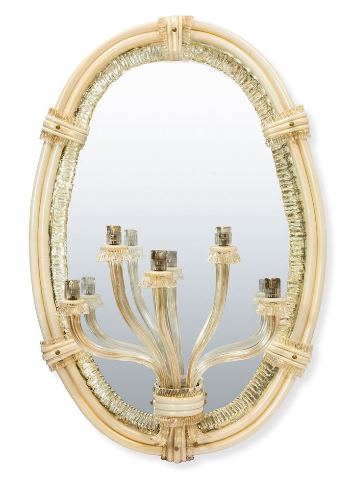 SCARPA CARLO (attribuito) Importante specchiera con cornice in vetro lattimo...
