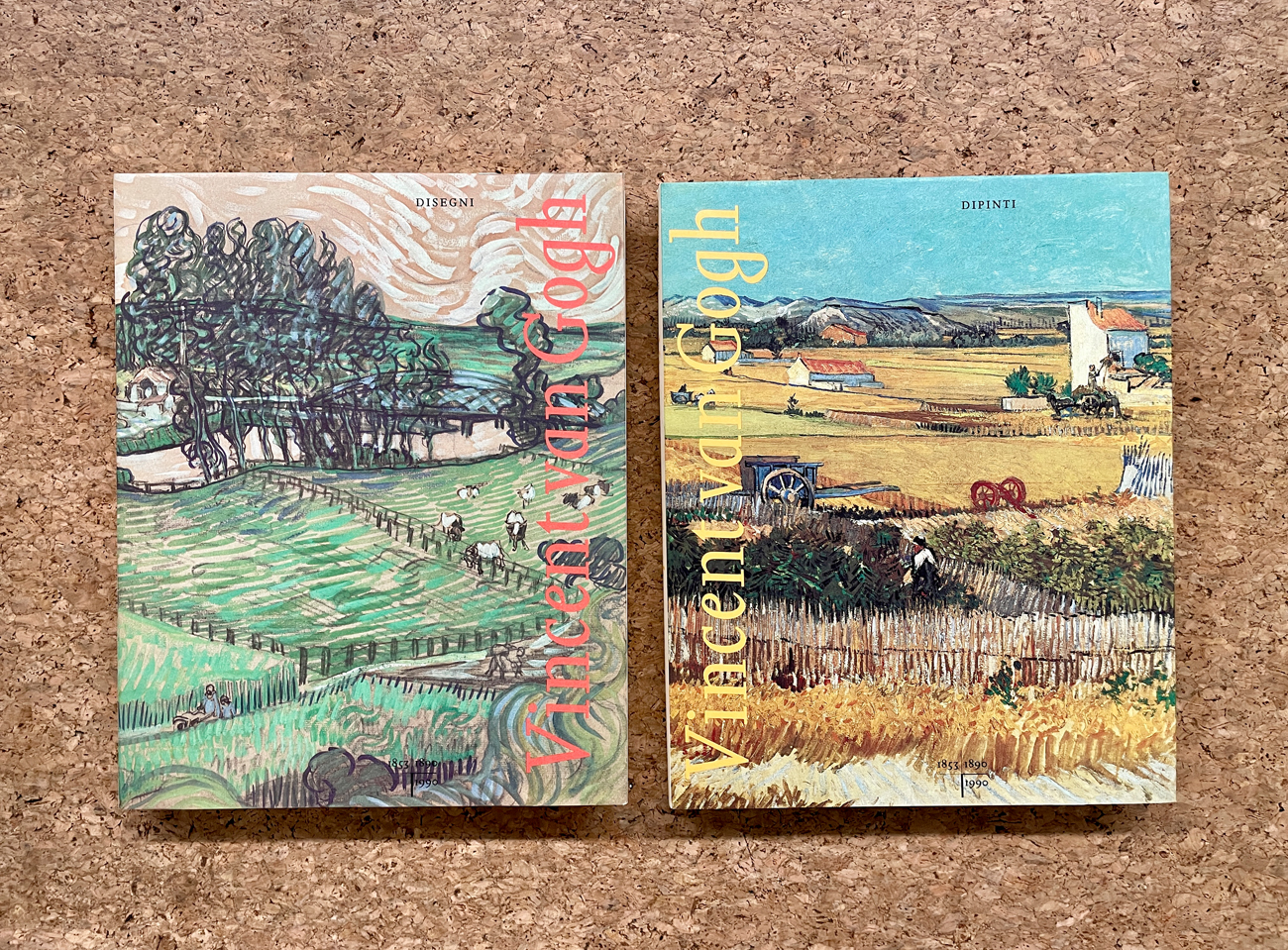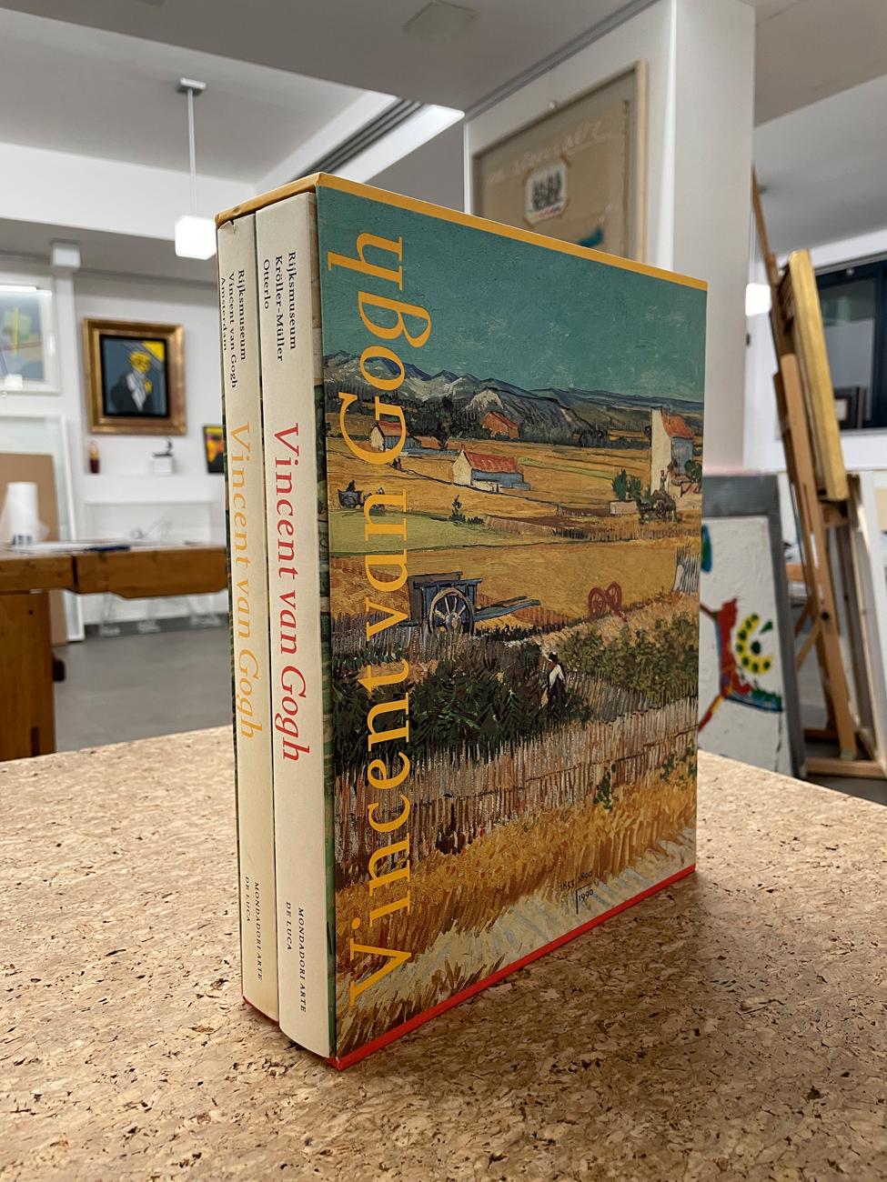 Cofanetto contenente 2 cataloghi riccamente illustrati: 'Vincent Van Gogh. Dipinti' e 'Vincent Van Gogh. Disegni', editi in occasione delle esposizioni tenutesi presso Rijksmuseum Vincent Van Gogh, Amsterdam e Otterlo, 1990