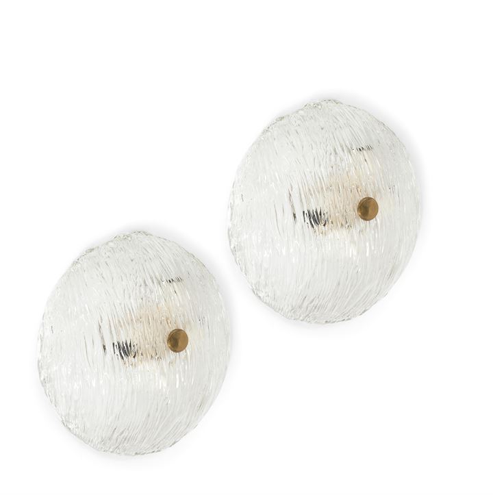 VENINI Due lampade a plafone con struttura in ottone e vetro corteccia...