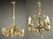 Due lampadari in ferro battuto laccato con decori di foglie e fiori. Inizi XX...