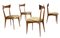 PARISI ICO Quattro sedie in legno d'acero tinto e rivestimento in tessuto...