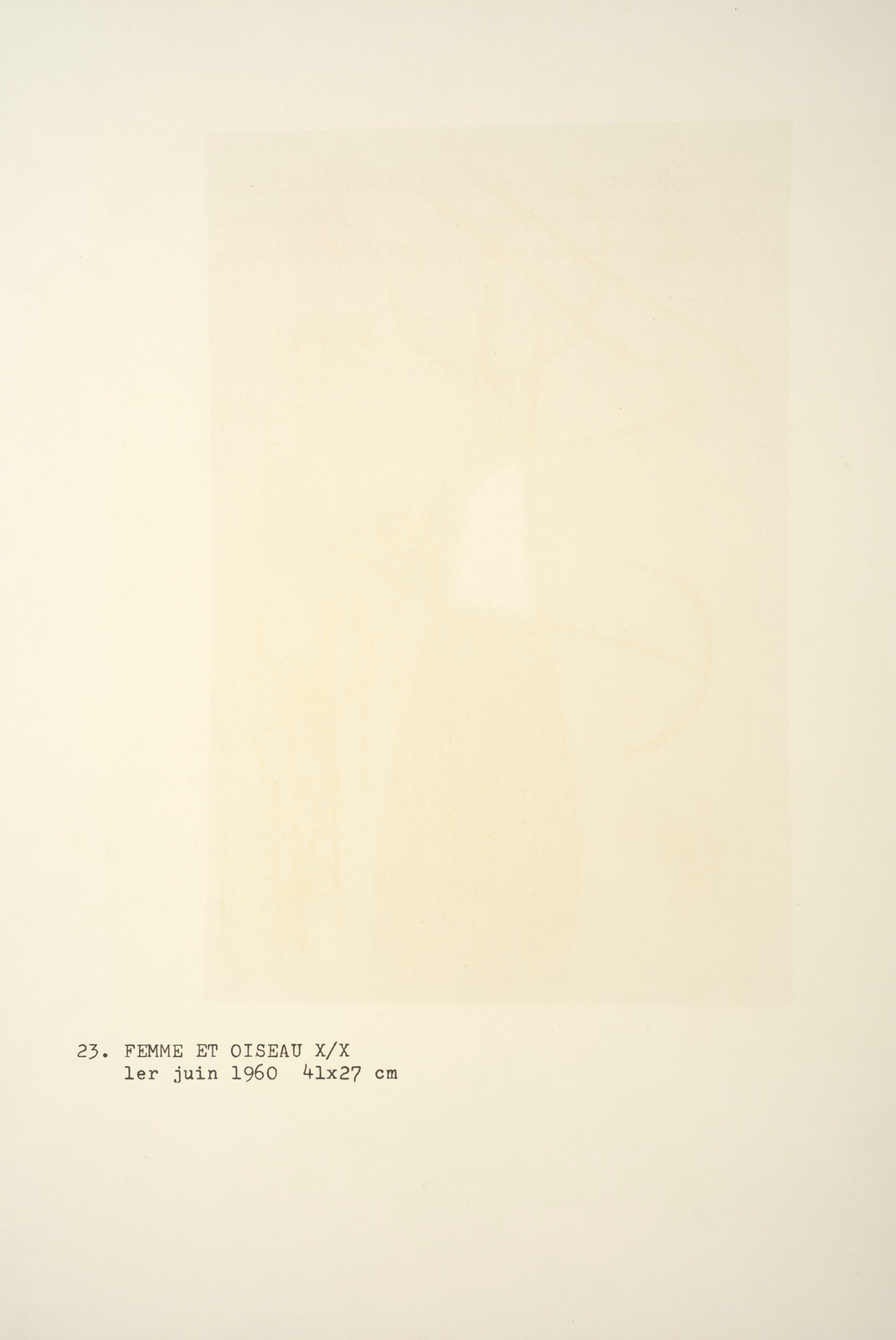MIRO' JOAN (1893 - 1983) Femme et oiseau X/X. Fotolitografia. Cm 45,00 x 56,00. Firma a lastra in basso a sinistra. Timbro a secco Edizioni Maeght, Parigi, in basso a sinistra.