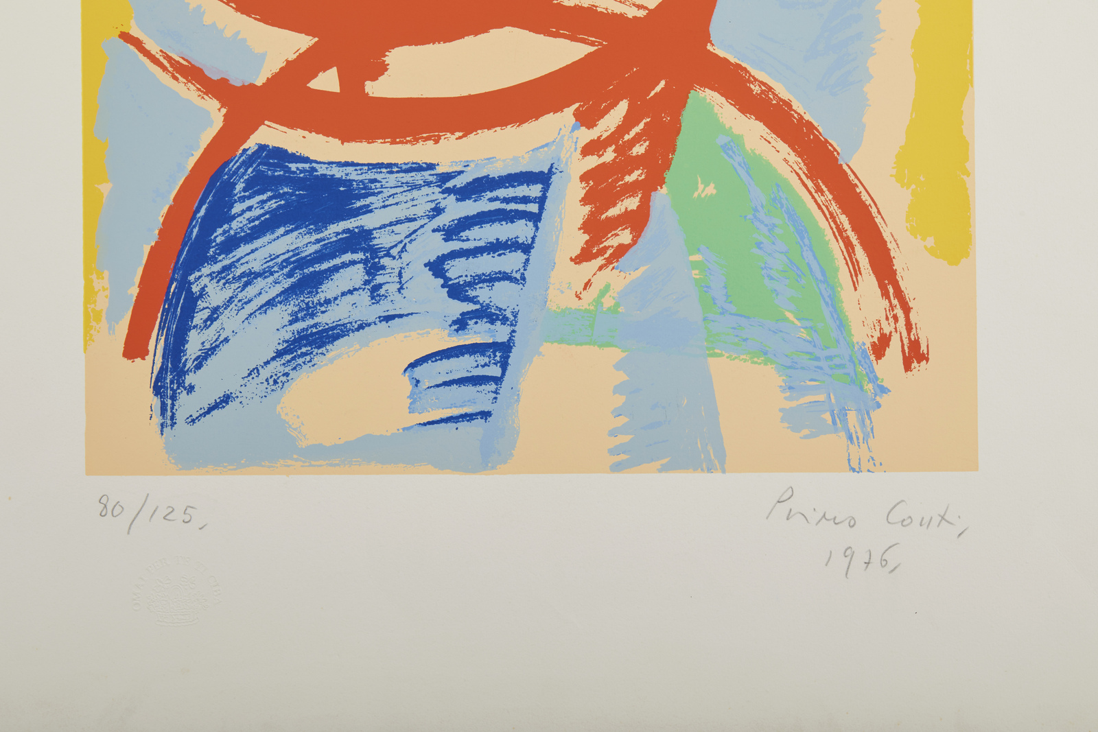 CONTI PRIMO (1900 - 1988) Senza titolo. . 1976. Serigrafia. Cm 50,00 x 70,00. 80/125. Tiratura, firma e anno in basso a matita. Timbro a secco "Omai per te ti ciba" in basso a sinistra. Lievi difetti.