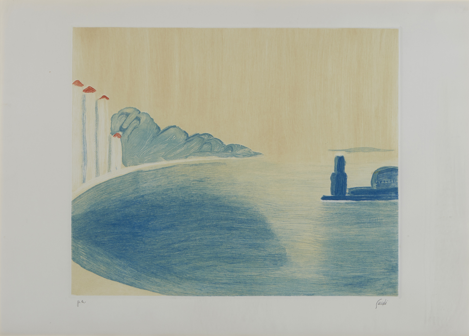GUIDI VIRGILIO (1891 - 1984) Senza titolo. Acquaforte. Cm 70,00 x 50,00. P.a.Tiratura e firma in basso a matita. Dimensioni lastra: 46,5x39cm