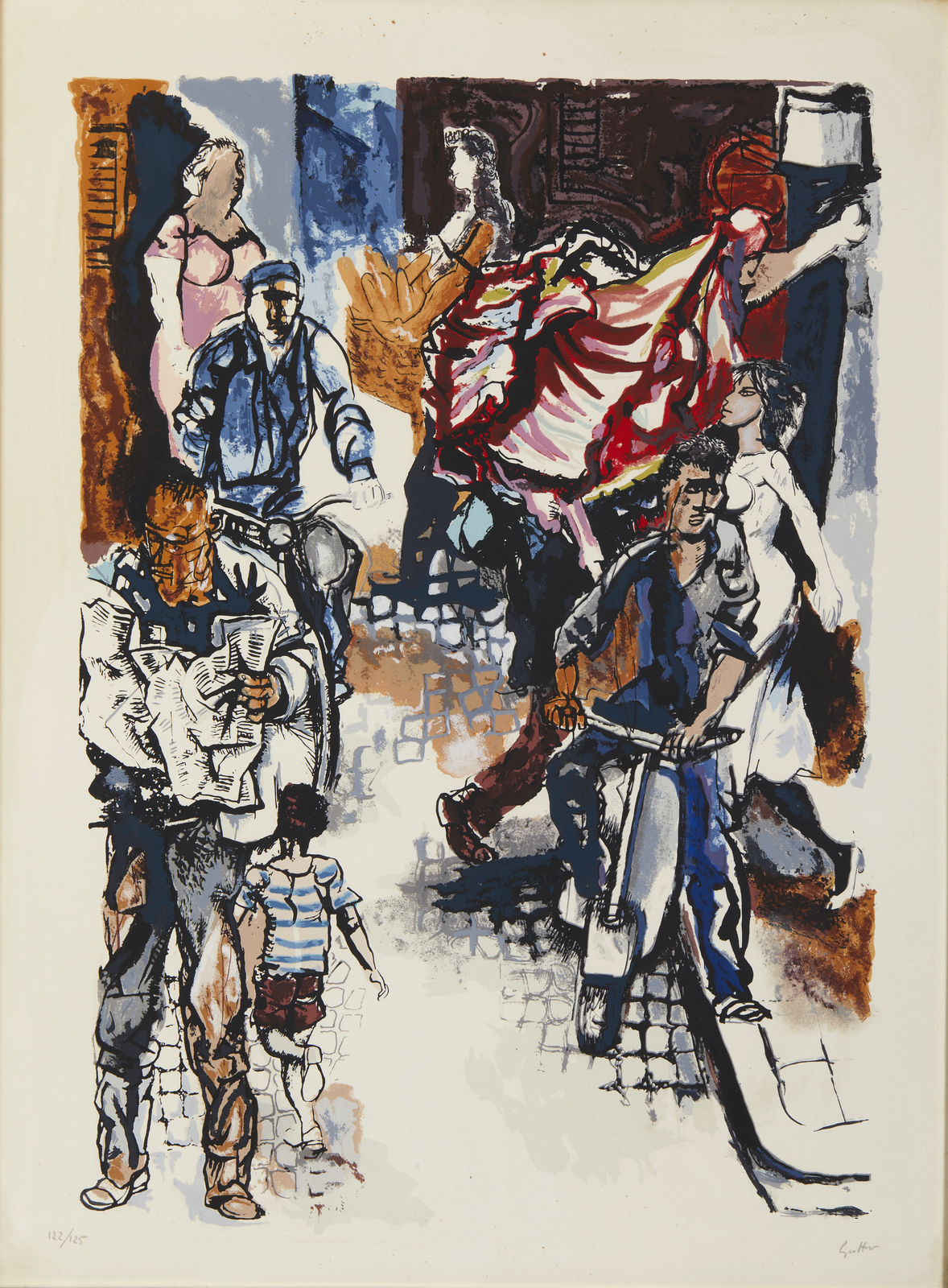 GUTTUSO RENATO (1912 - 1987) Senza titolo. Litografia. Cm 58,00 x 78,50. 122/125. Tiratura e firma in basso a matita. Cornice presente