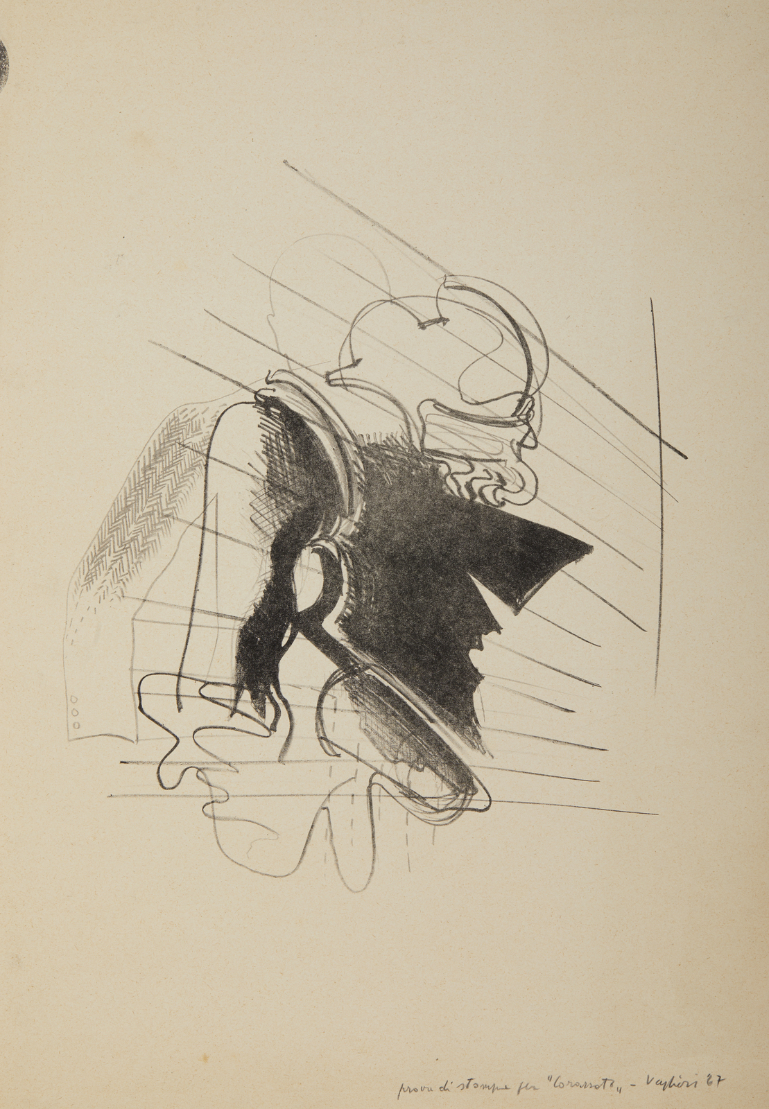VAGLIERI TINO (1929 - 2000) Corazzato. 1967. Litografia. Cm 34,50 x 50,50. Prova di stampa. Tiratura, titolo , firma e anno in basso a destra a matita. Lievi difetti.