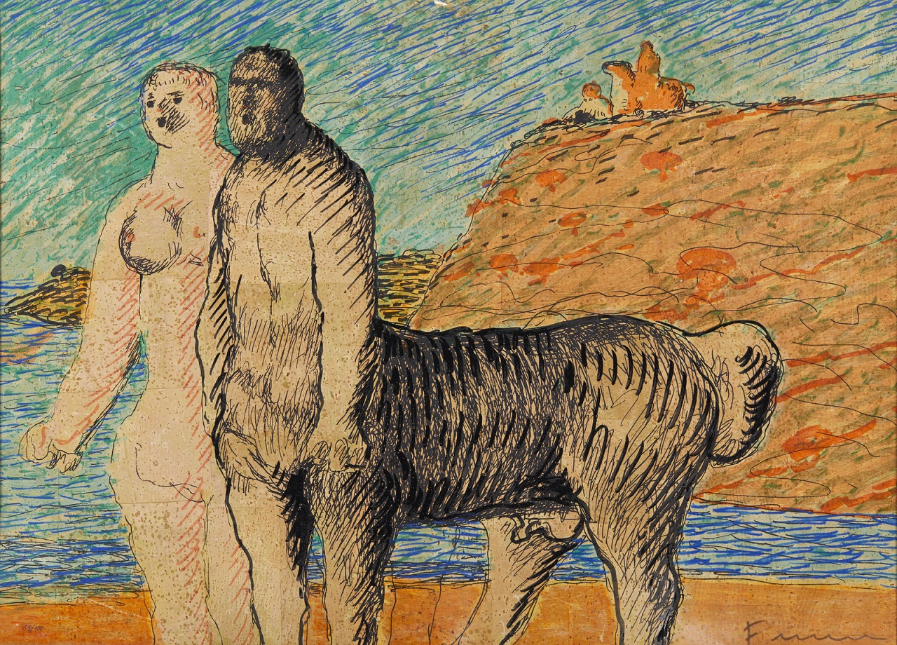 FIUME SALVATORE (1915 - 1997) - Isole di statue con centauro.