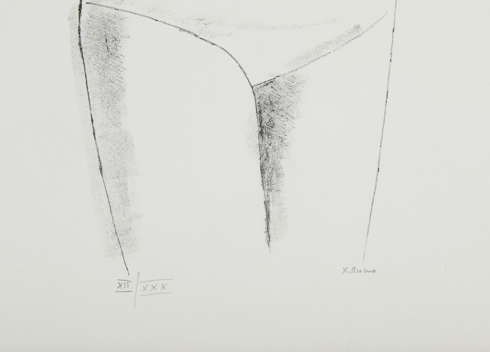 BUENO XAVIER (1915 - 1979) Senza titolo. Litografia. Cm 48,80 x 69,00. XII/XXX. Tiratura e firma a matita in basso al centro, In basso a sinistra timbro a secco recante la scritta "Opera originale Atelier Bueno". Cornice presente