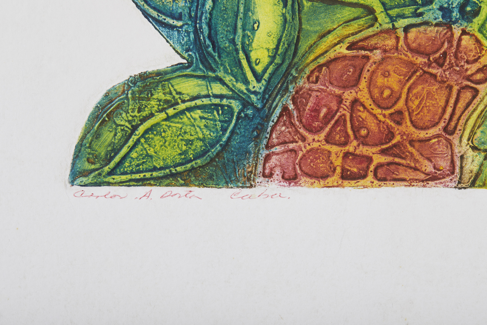L'AGRIFOGLIO Cuba. Calcografia. Cm 44,50 x 53,00. Firma e titolo in basso a sinistra a penna. Tiratura non segnalata. Difetti.