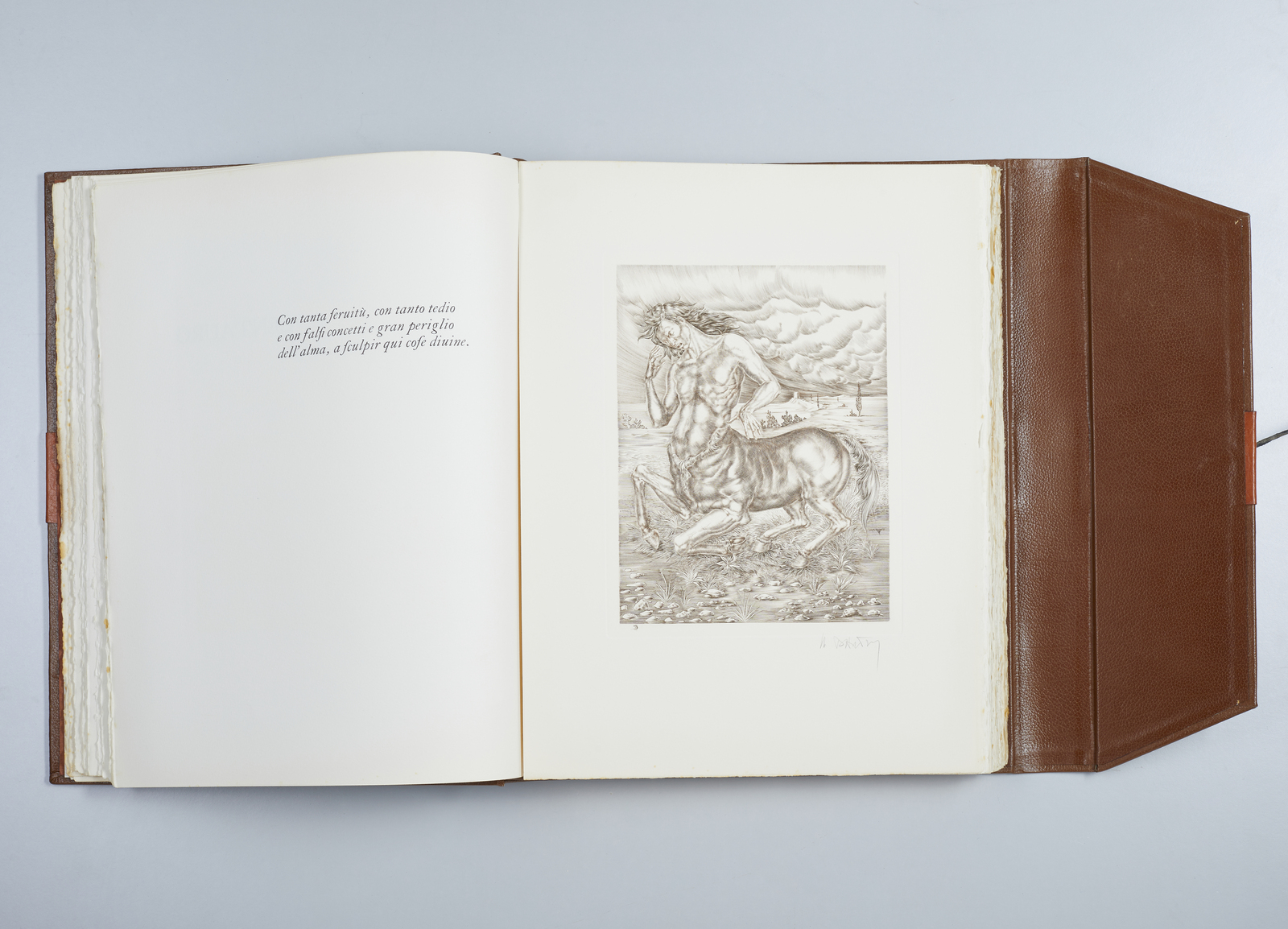 DAUTRY MARC (1930 - 2008) Michelangiolo Buonarroti. 1975. Libro d'artista. Cm 35,50 x 44,00 x 5,00. 1229/2000. Raccolta di 2 volumi contenenti 17 incisioni in rame. Firma a matita su ogni foglio. Edizione totale: 2000 esemplari di cui 30 fuori commercio, 8 ad personam corredati da una lastra originale in rame, 16 ad personam accompagnati da un disegno originale in sanguigna, 126 corredati da una serie di incisioni su carta giappone con numeri da I a CXXVI, 1820 completi di incisioni su carta arches, numerati da 1 a 1820. Dimensione foglio: 43x32.5 cm. Dimensione lastra: 26.7x20.7 cm. Editore: Eldec spa Edizioni pregiate, Roma. Carta a mano Grand Velin d'Arches, Cartiere Arches. Stampate in torchio a mano da Manuel Robbe. Il carattere del testo Caslin Two Lines Pica è stato fuso appositamente per questa edizione dalla Foderia Caslon Radiguer di Parigi su matrici originali del 1734. La composizione a mano, l'impaginazione e la stampa tipografica sono state eseguite da Yvette e Jean Paul Vibert. Legatura eseguita dalla Legatoria Conti Borbone di Milano. Lievi difetti.