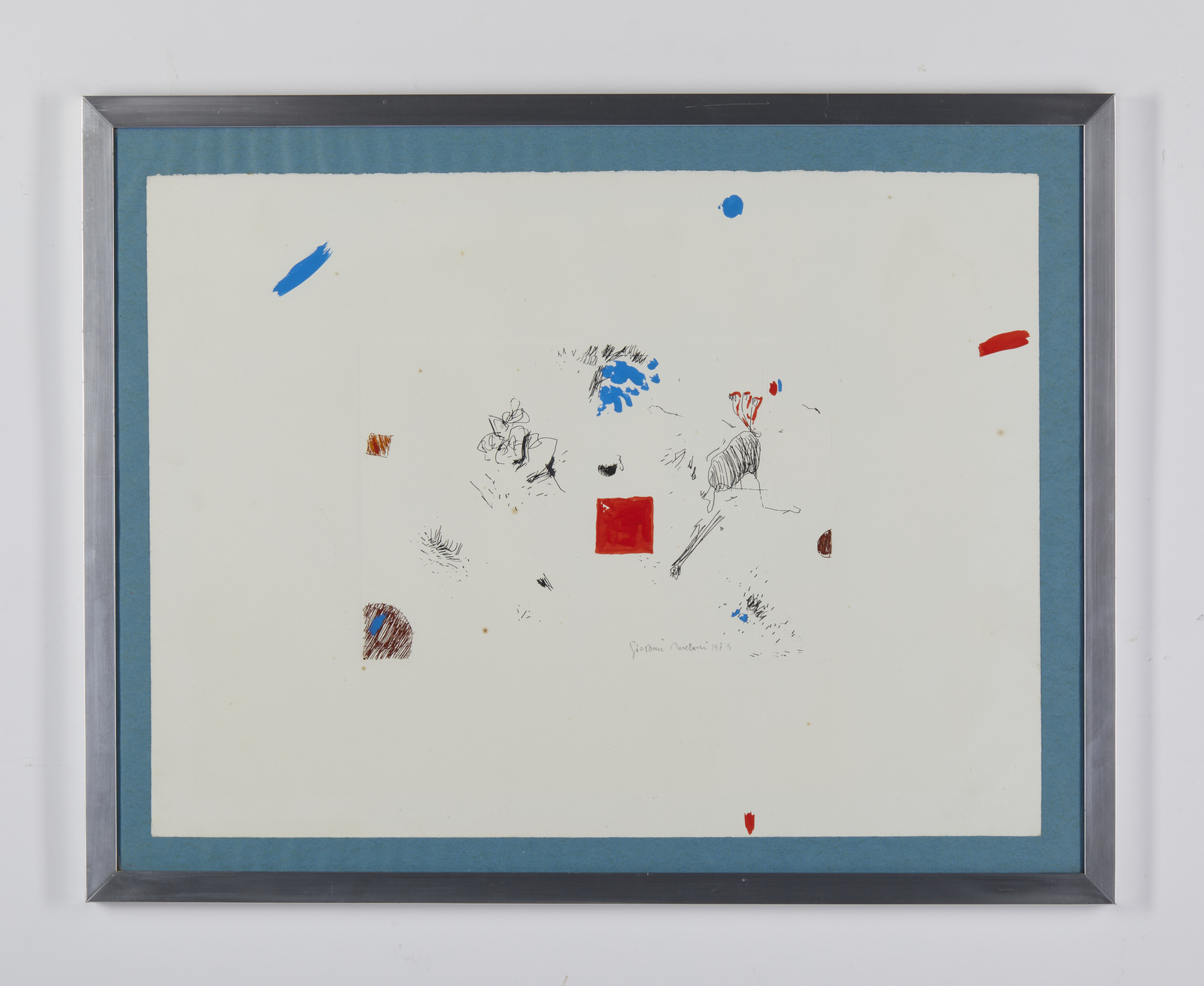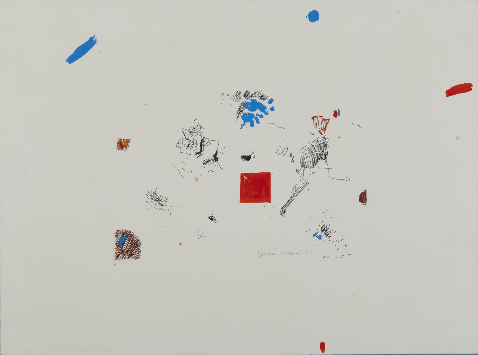 MELONI GIOVANNI (n. 1933) Senza titolo. 1973. Acquaforte e acquatinta. Cm 56,00 x 42,50. Firma e anno a matita in basso a destra. Dimensioni lastra: 30x20cm. Cornice presente
