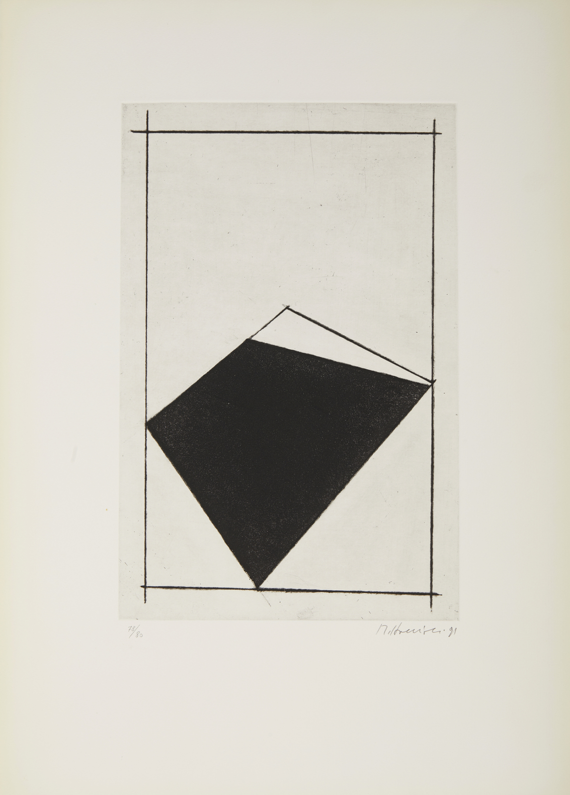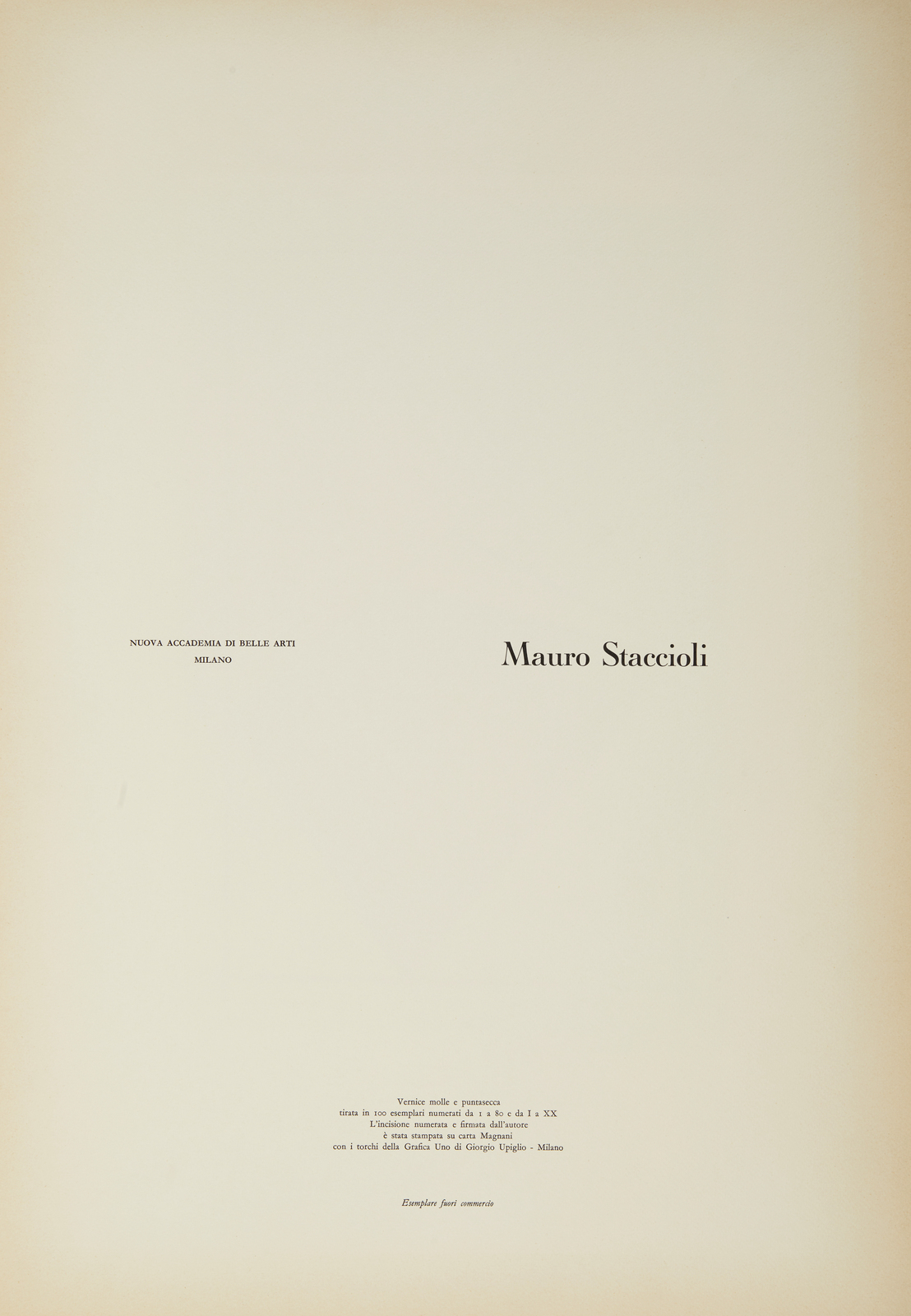 STACCIOLI MAURO (1937 - 2018) Senza titolo. 1991. Puntasecca. Cm 50,30 x 69,50. 78/80. Tiratura, firma e anno in basso a matita. Edizione totale: 100 esemplari di cui 80 numerati da 1/80 a 80/80+20 esemplari numerati da I/XX a XX/XX. Carta Magnani. Stampatore: Grafica Uno di Giorgio Upiglio, Milano. Dimensione lastra: 44.8x29.5 cm, Entro cartella originale.
