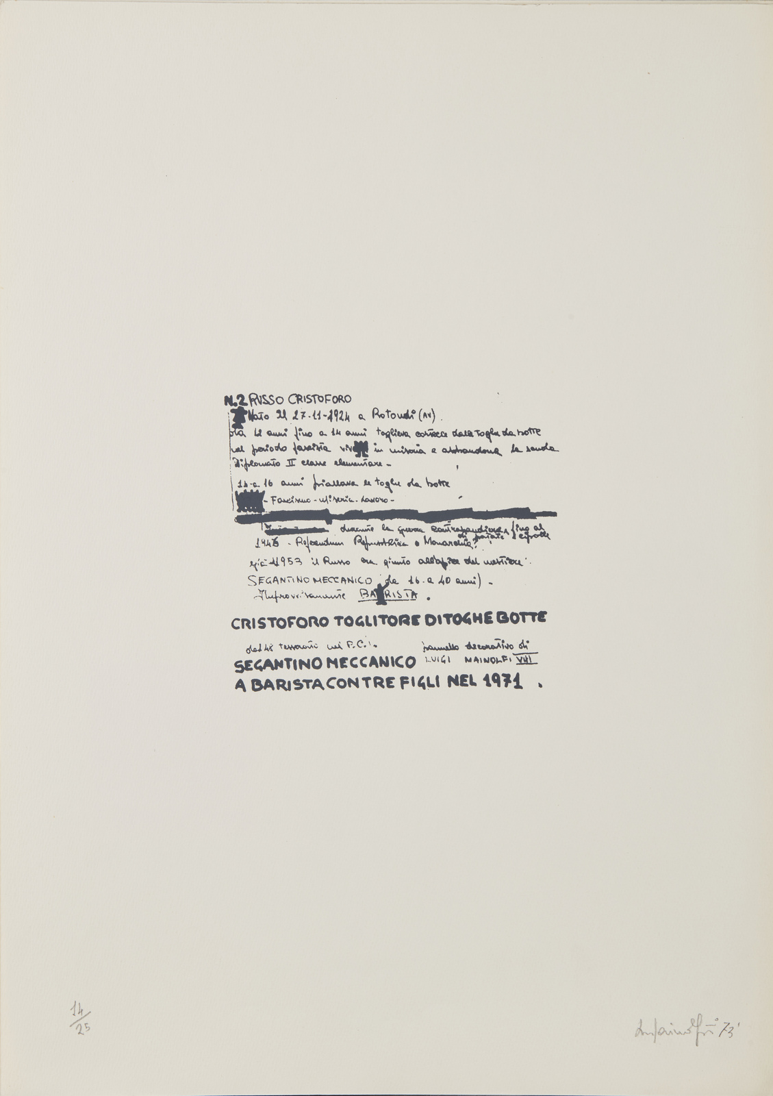 MAINOLFI LUIGI (n. 1948) Senza titolo. . 1973. Serigrafia. Cm 35,50 x 50,00. 14/25. Tiratura, firma e anno in basso a matita.