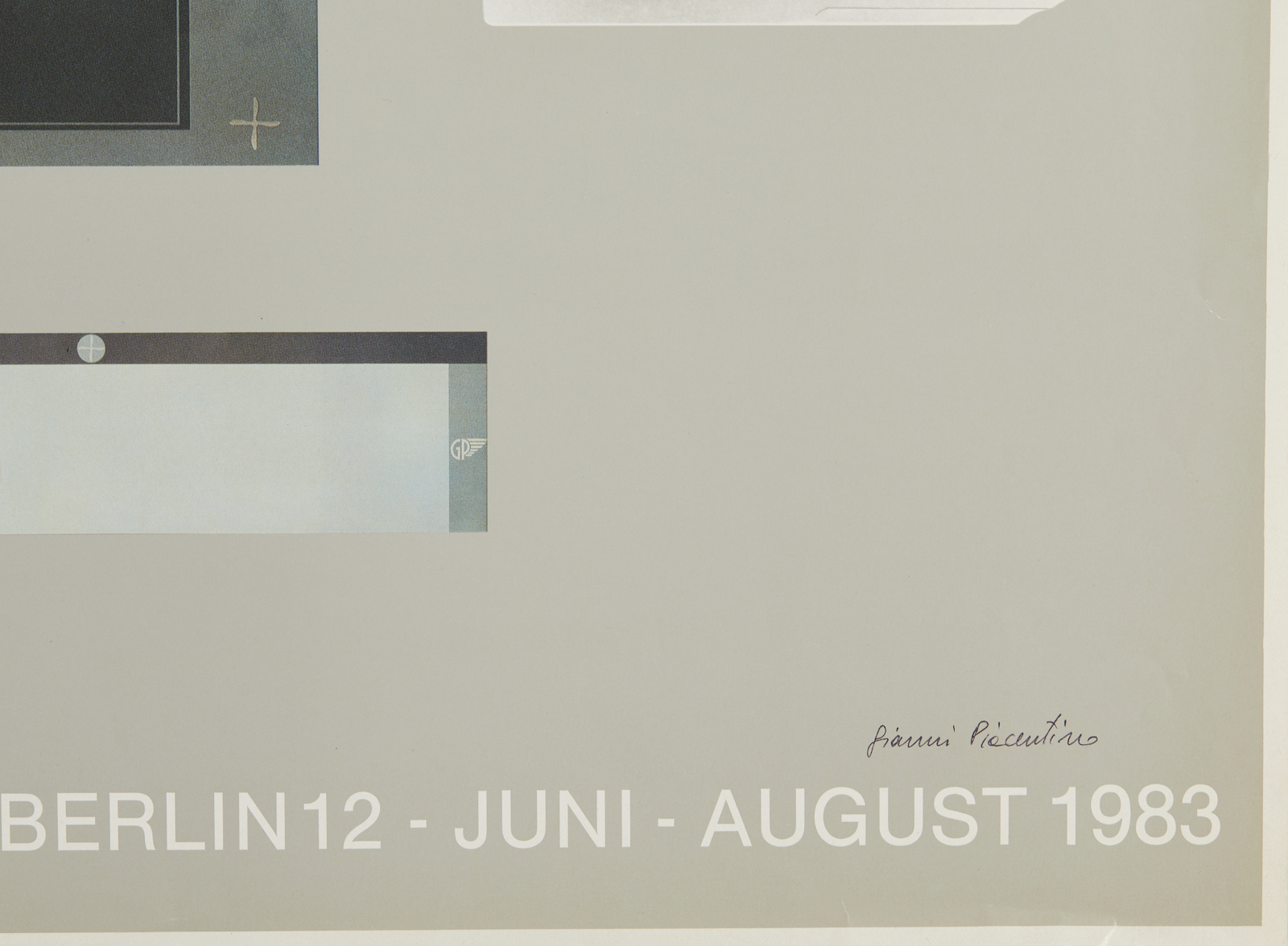 PIACENTINO GIANNI (n. 1945) Senza titolo. 1983. Poster. Cm 99,50 x 70,00. Firma in basso a destra. Poster della mostra tenutasi a Berlino. Stampato da Giacone, Chieri.