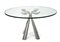 Tavolo in acciaio personal pressofuso, piano in cristallo con fascia perimetrale specchiata.