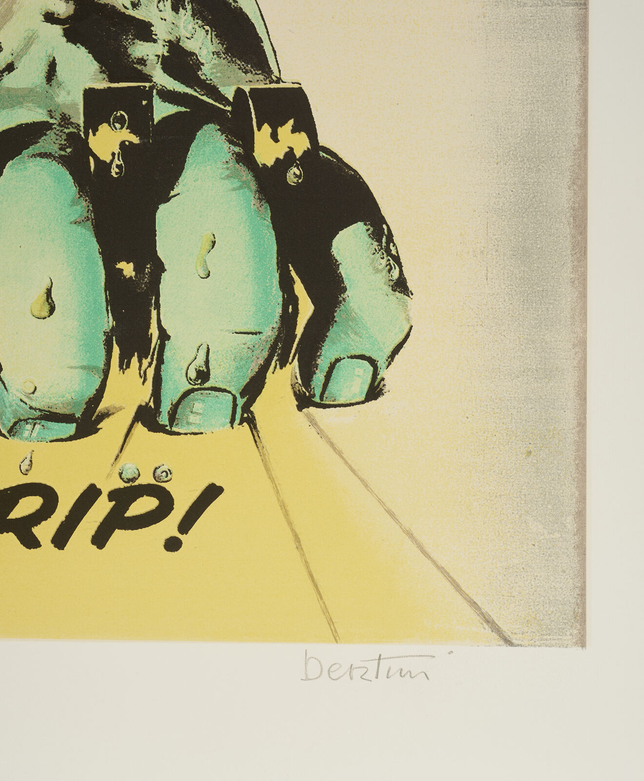 BERTINI GIANNI (1922 - 2010) Grip. 2003. Serigrafia. Cm 76,50 x 110,00. II/XX. Tiratura e firma in basso a matita. Timbro a secco Stamperia Berardinelli, Brescia, in basso a destra. Edizione totale: 75+XX esemplari. Difetti.