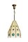 Lampada a sospensione "Murrine" con diffusore in acciaio smaltato, ottone, vetro satinato e murrine in vetro Vistosi incastonate nella struttura.