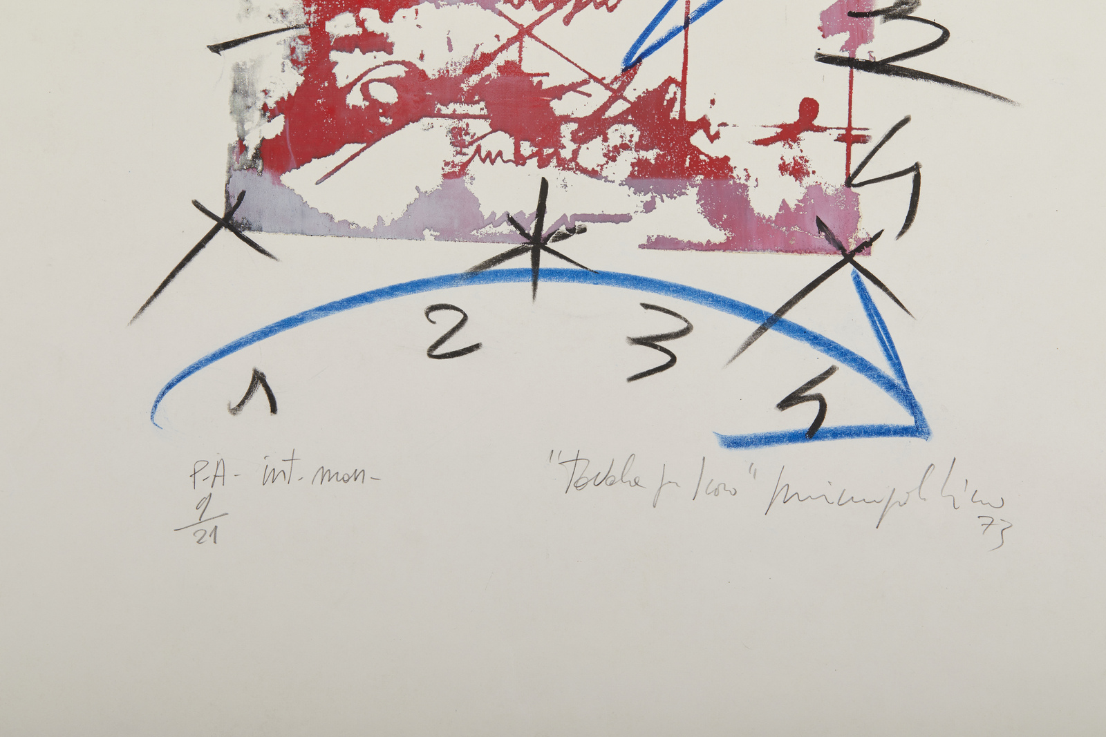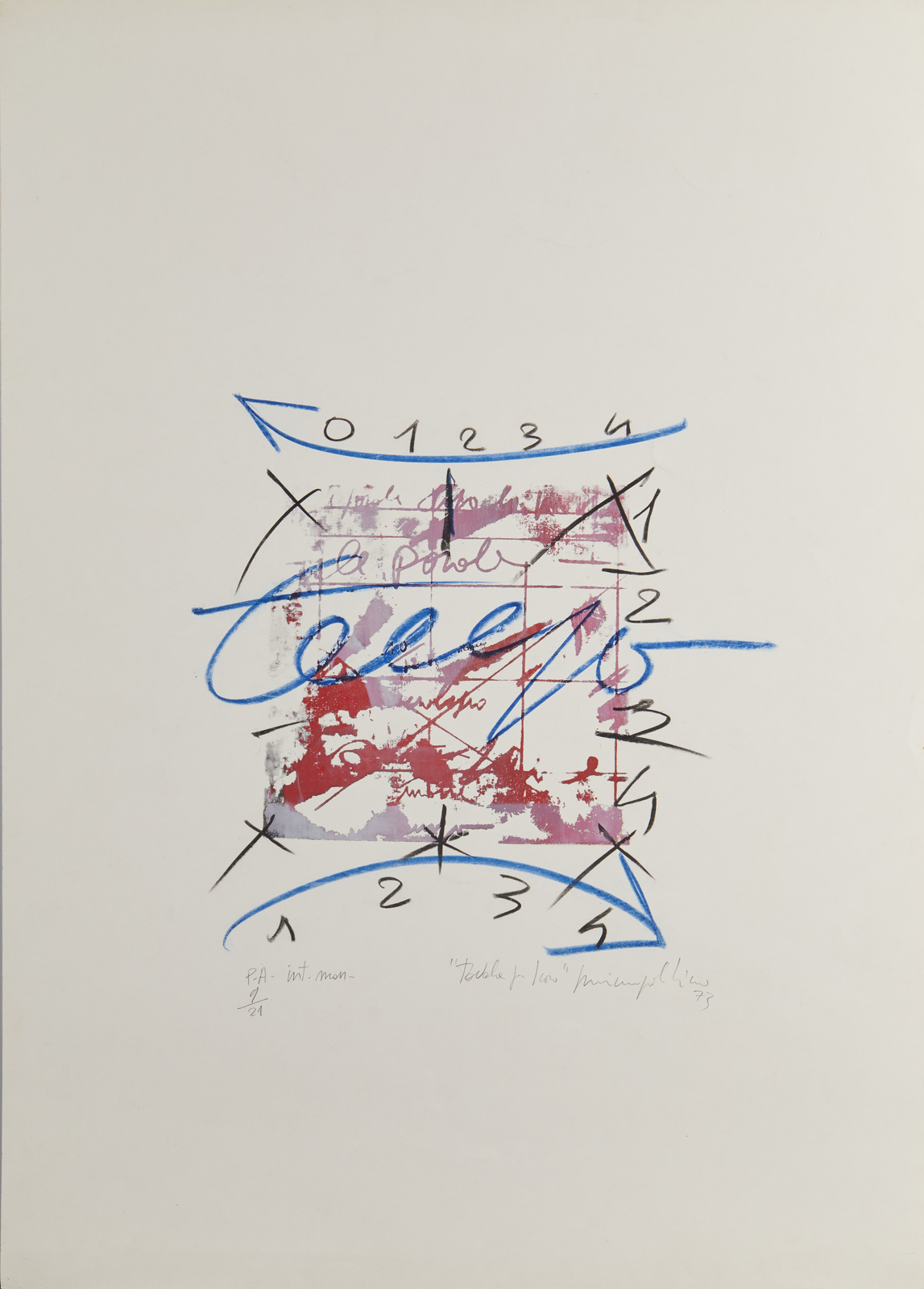 PALADINO MIMMO (n. 1948) Tavola per libro. . 1973. Retouchè su serigrafia.. Cm 50,00 x 70,00. P.A. 9/21 (con intervento manuale). Tiratura, firma, anno e titolo in basso a matita. Lievi difetti.