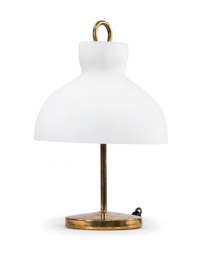 GARDELLA IGNAZIO Arenzano Lampada da tavolo in ottone e vetro opalino. Prod....