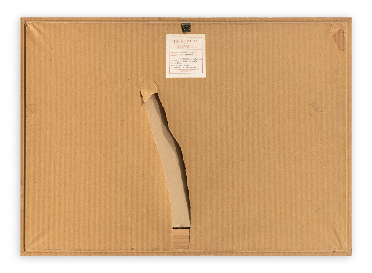Etichetta della Galleria La Medusa (RM) al retro del cartone protettivo