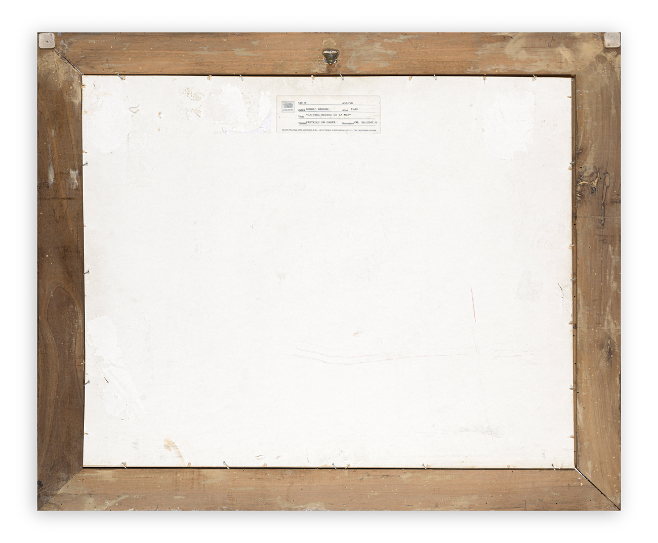 Etichetta della Cleto Polcina Arte Moderna (RM) al retro del cartone protettivo