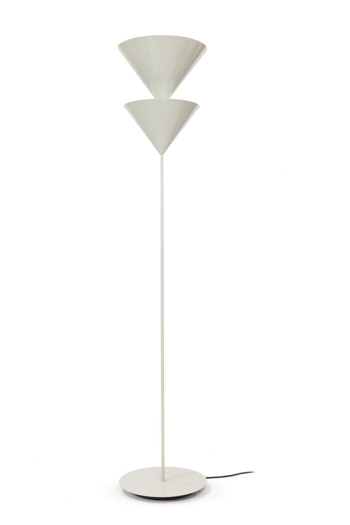 Lampada da terra a luce indiretta e riflessa in alluminio verniciato bianco, doppia accensione indipendente, base in pietra serena.