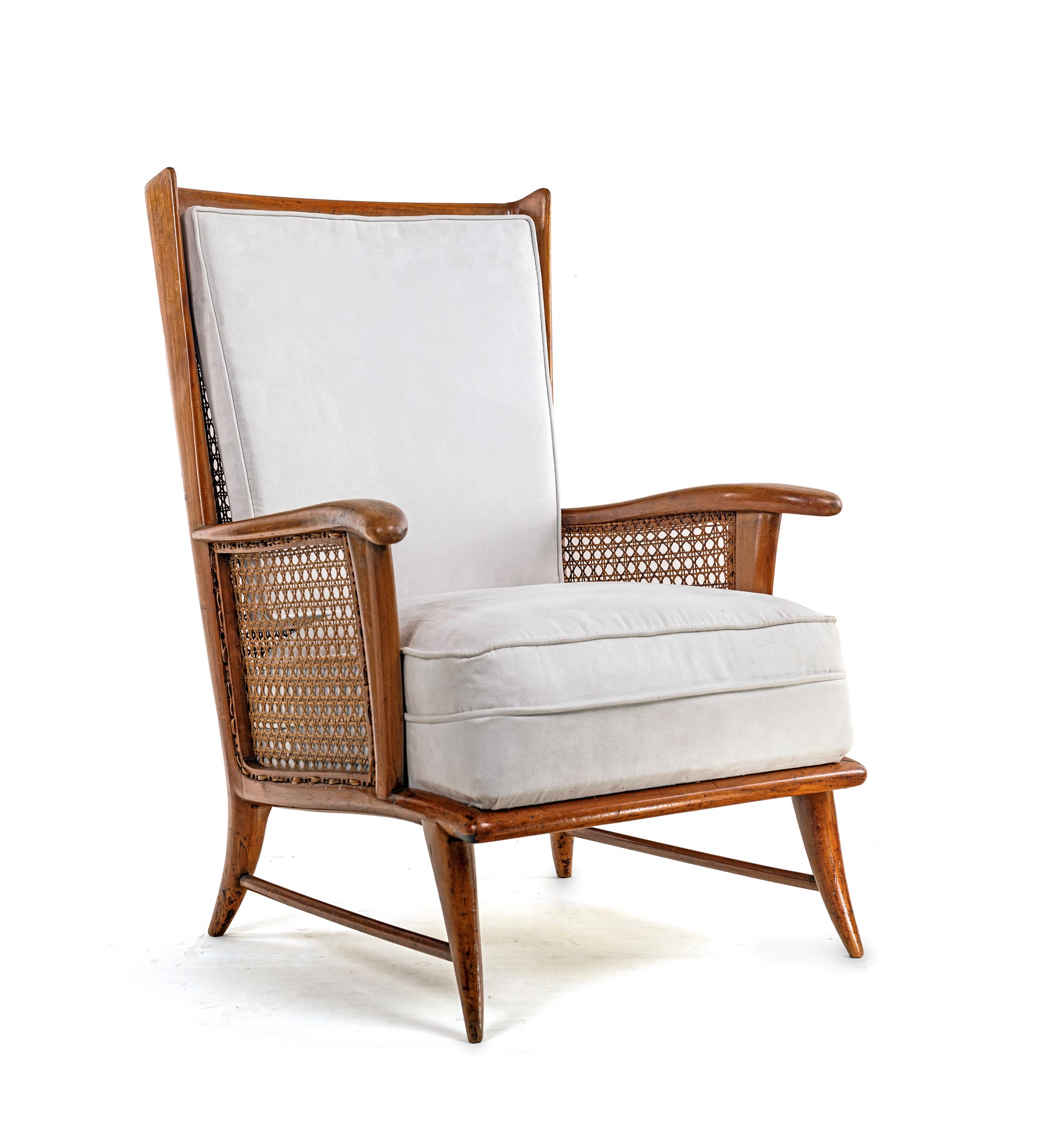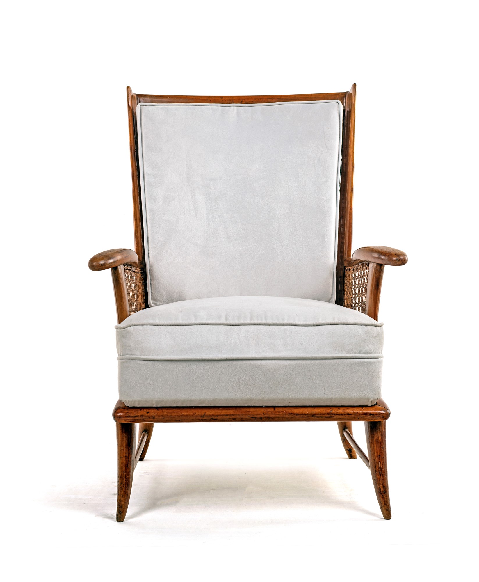 Paolo Buffa Milano 1903-Milano 1970 Poltrona 1945 circa Legno di ciliegio, canna d'India, cuscinatura in velluto cm 89x55x55 Certificato di autenticità rilasciato dall'Archivio Paolo Buffa