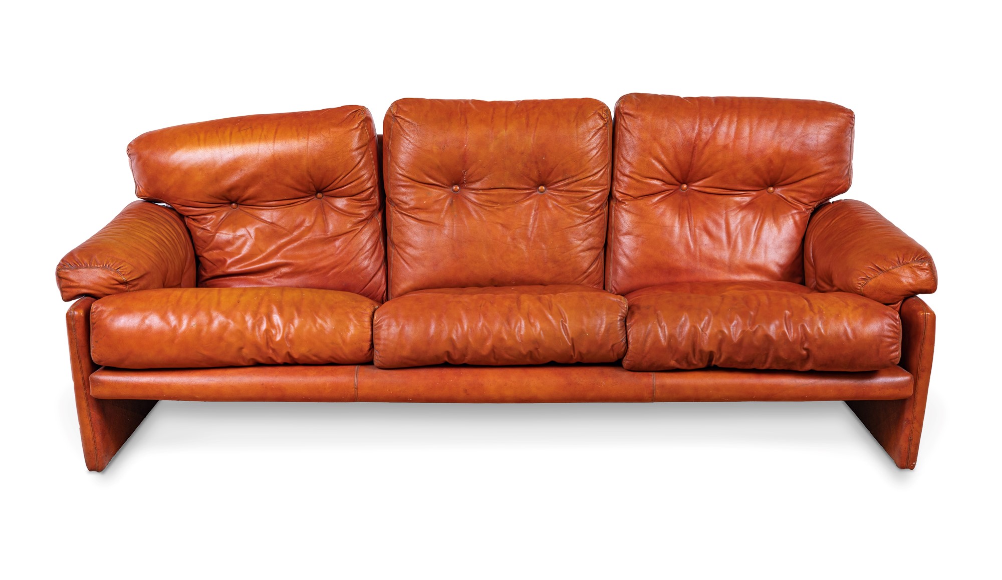 Afra e Tobia Scarpa Divano e due poltrone mod. Coronado Anni '60 circa Lotto composto da un divano a tre posti e due poltrone. Prod. B&B, Italia, 1960 circa. Il divano misura cm 70x210x80 circa e le due poltrone misurano ognuna cm 70x100x95 circa. Struttura in legno e rivestimento in pelle