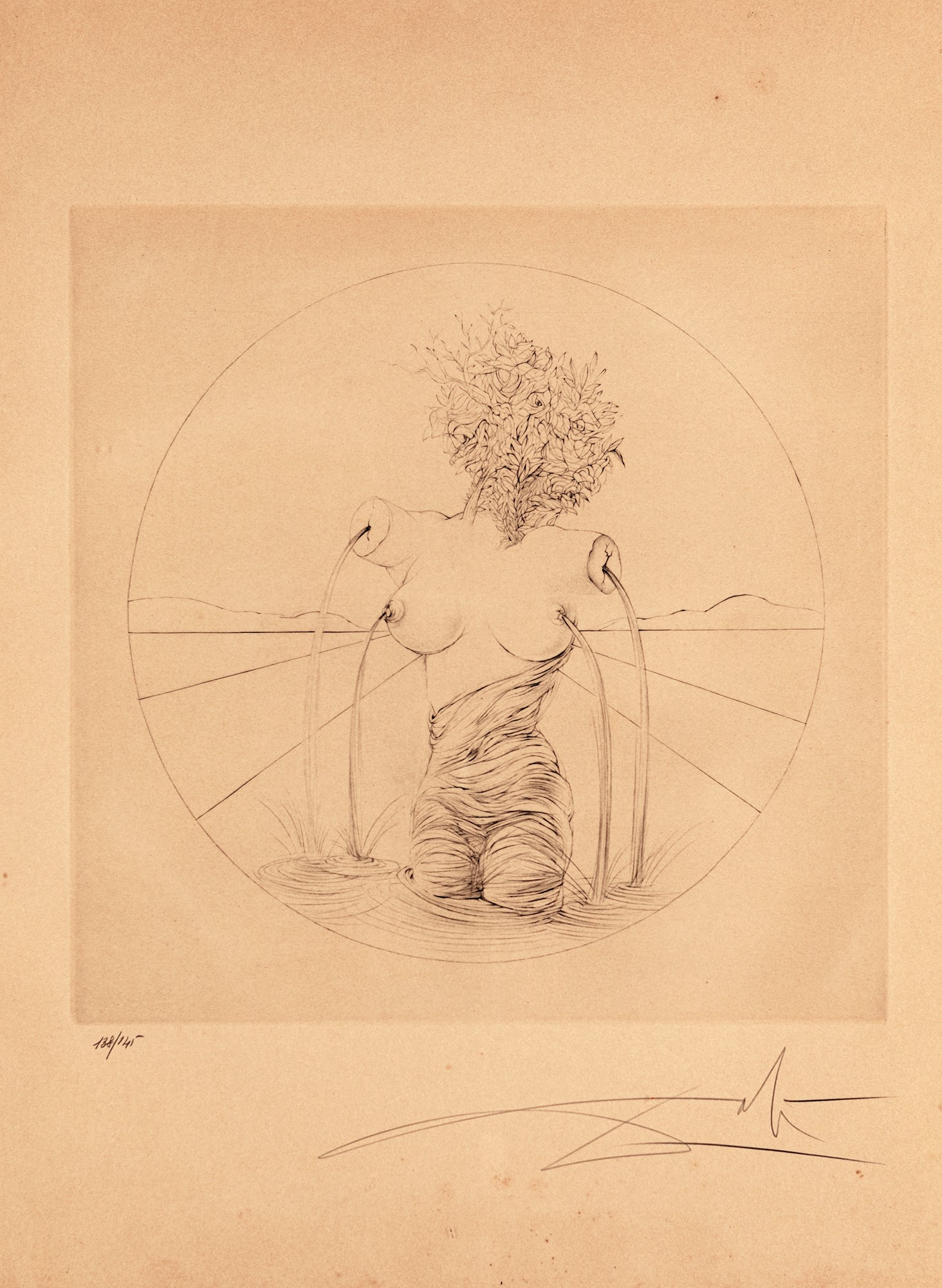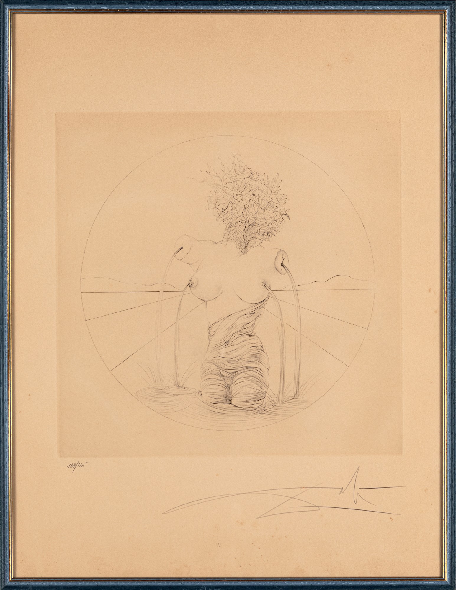 Salvador Dalì Figueres 1904-Figueres 1989 Senza titolo Acquaforte/acquatinta cm 65x50 - in cornice cm 67x53 Firma e numerazione "Dalì 138/145"