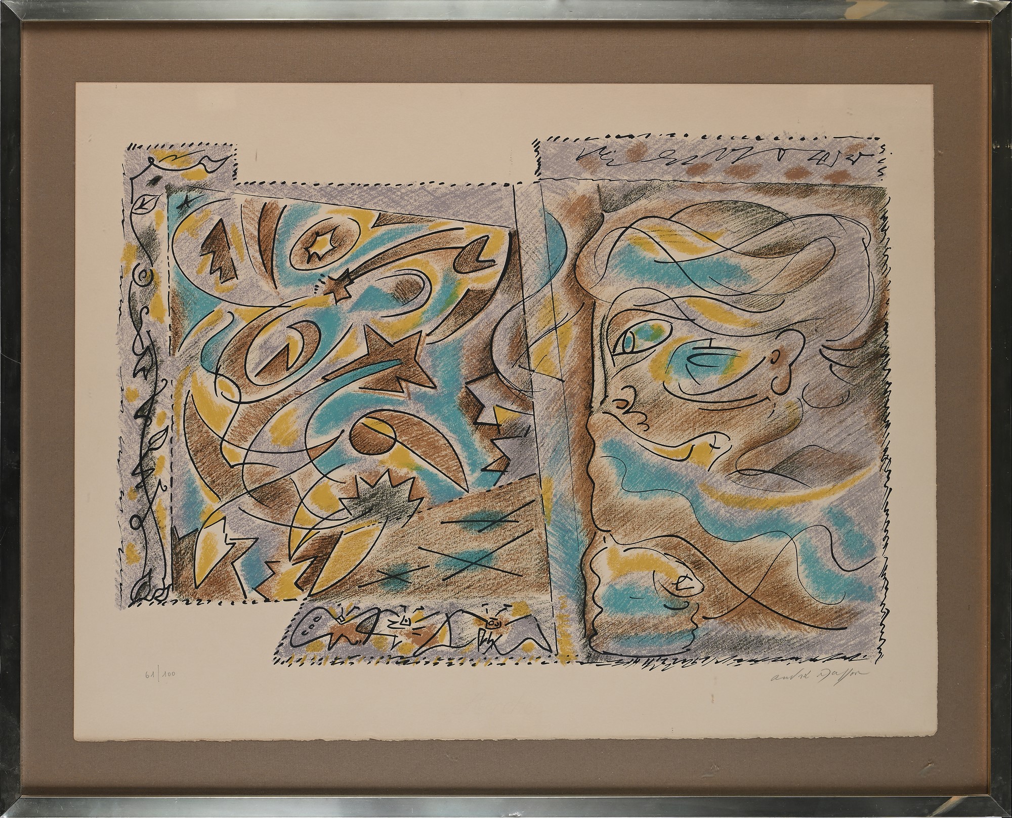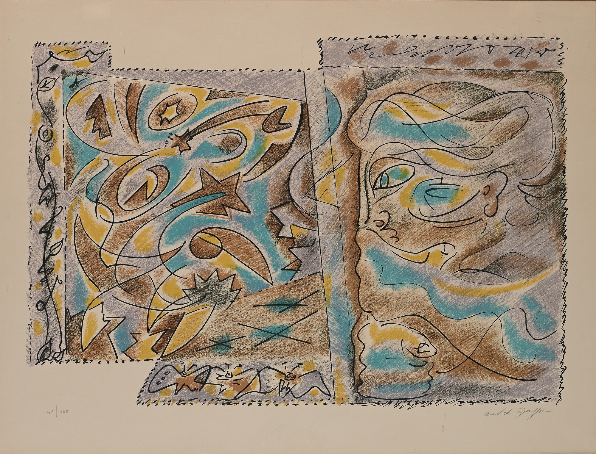André Masson Balagny-sur-Thérain 1896-Parigi 1987 Leggenda Litografia cm 50x65,5 - in cornice cm 62x77 Firma e numerazione "Andrè Masson 61/100" Certificato di autenticità e provenienza rilasciato dallo stampatore