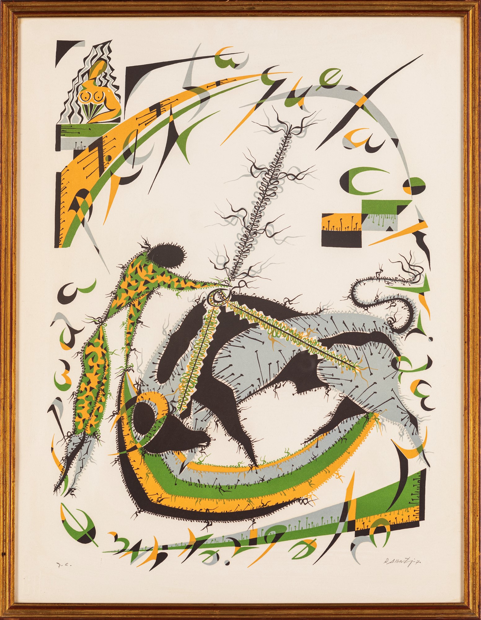 Rafael Alberti El Puerto de Santa Maria 1902-Cadice 1999 Senza titolo 1970 Litografia cm 64,5x50 - in cornice cm 68x53 Firma, data e numerazione "R.Alberti '70, p.a.", timbro a secco in basso a sinistra