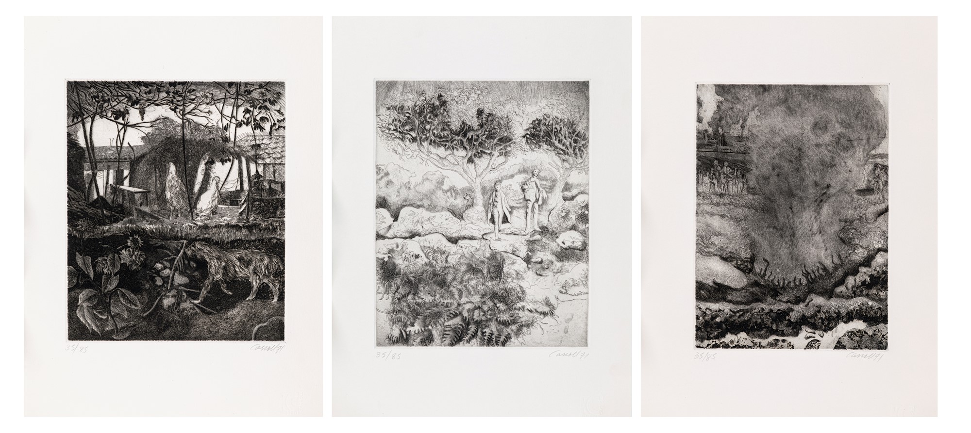 Robert Carroll Painesville 1934 Foglie d'erba 1971 Cartella di 3 acquaforti...