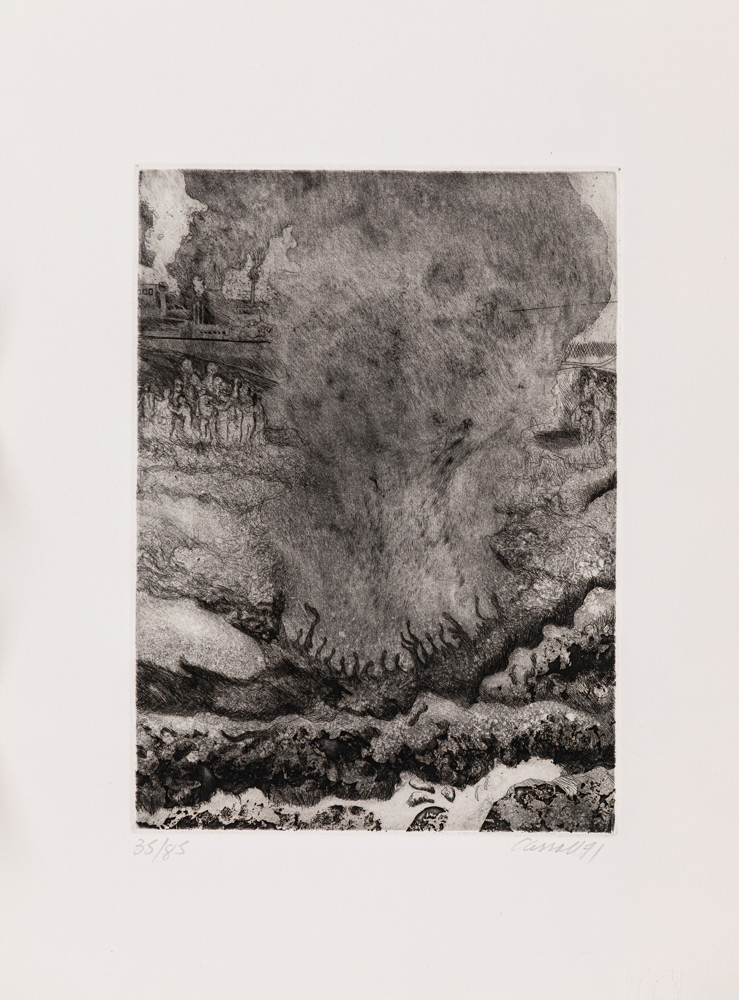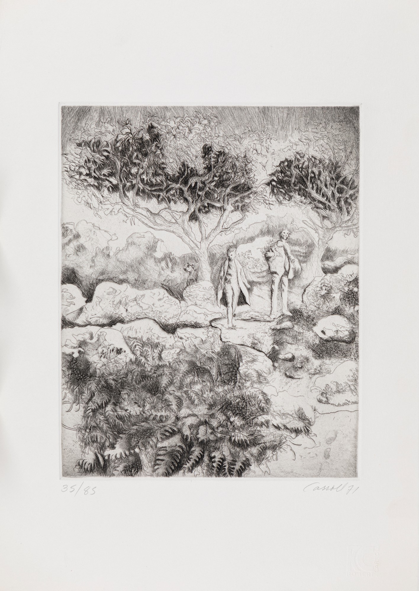 Robert Carroll Painesville 1934 Foglie d'erba 1971 Cartella di 3 acquaforti di Robert Carroll ed una poesia di Walt Whitman. Tutte e tre le acquaforti sono firmate, datate e numerate "Carroll 71, 35/85"