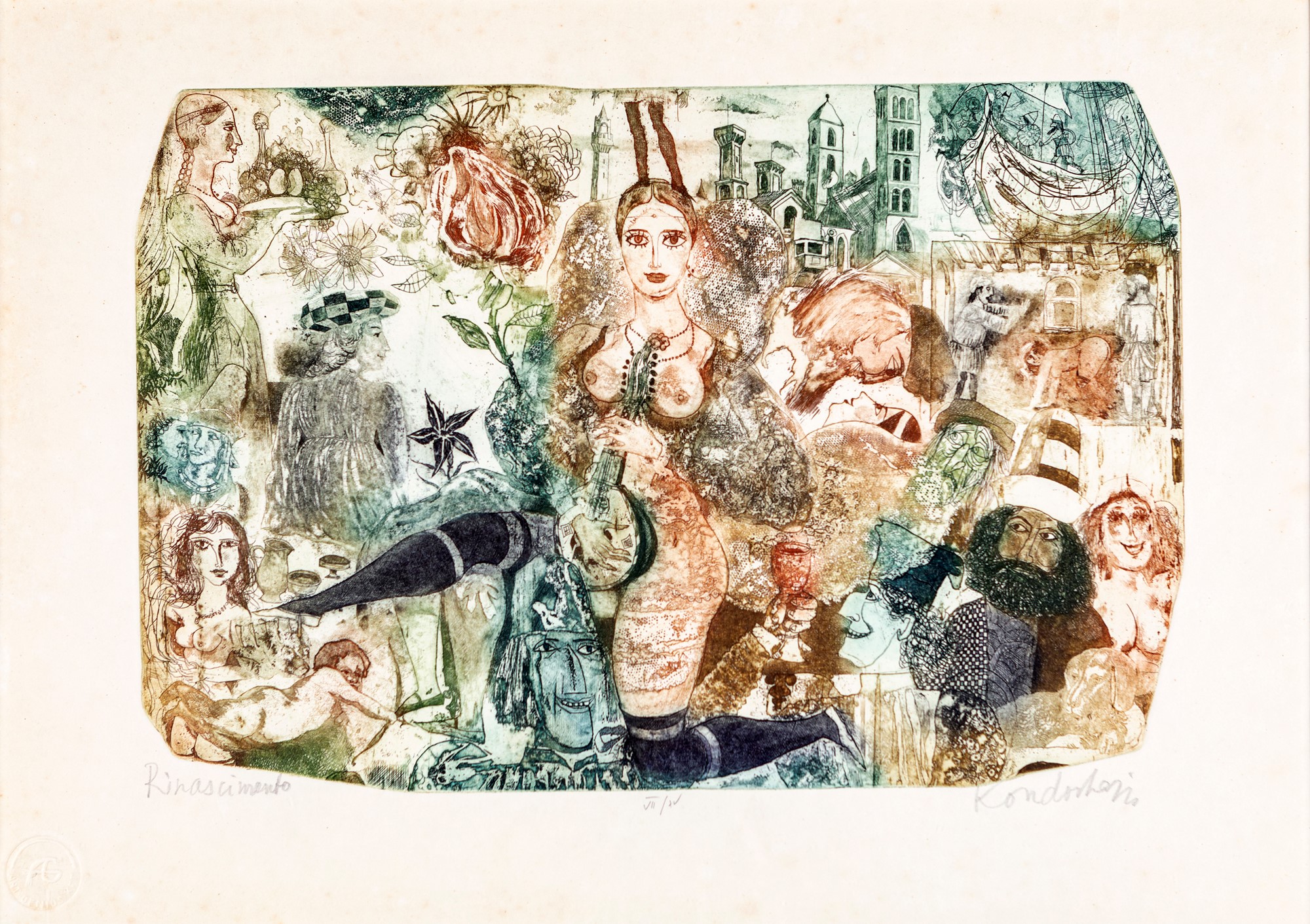 Bela Kondor Budapest 1931-Budapest 1972 Rinascimento Acquaforte/acquatinta cm 41x59 - in cornice cm 44x61 Firma, titolo e numerazione "Kondor VII/XV Rinascimento". Timbro a secco in basso a sinistra "Art Genius KFT".