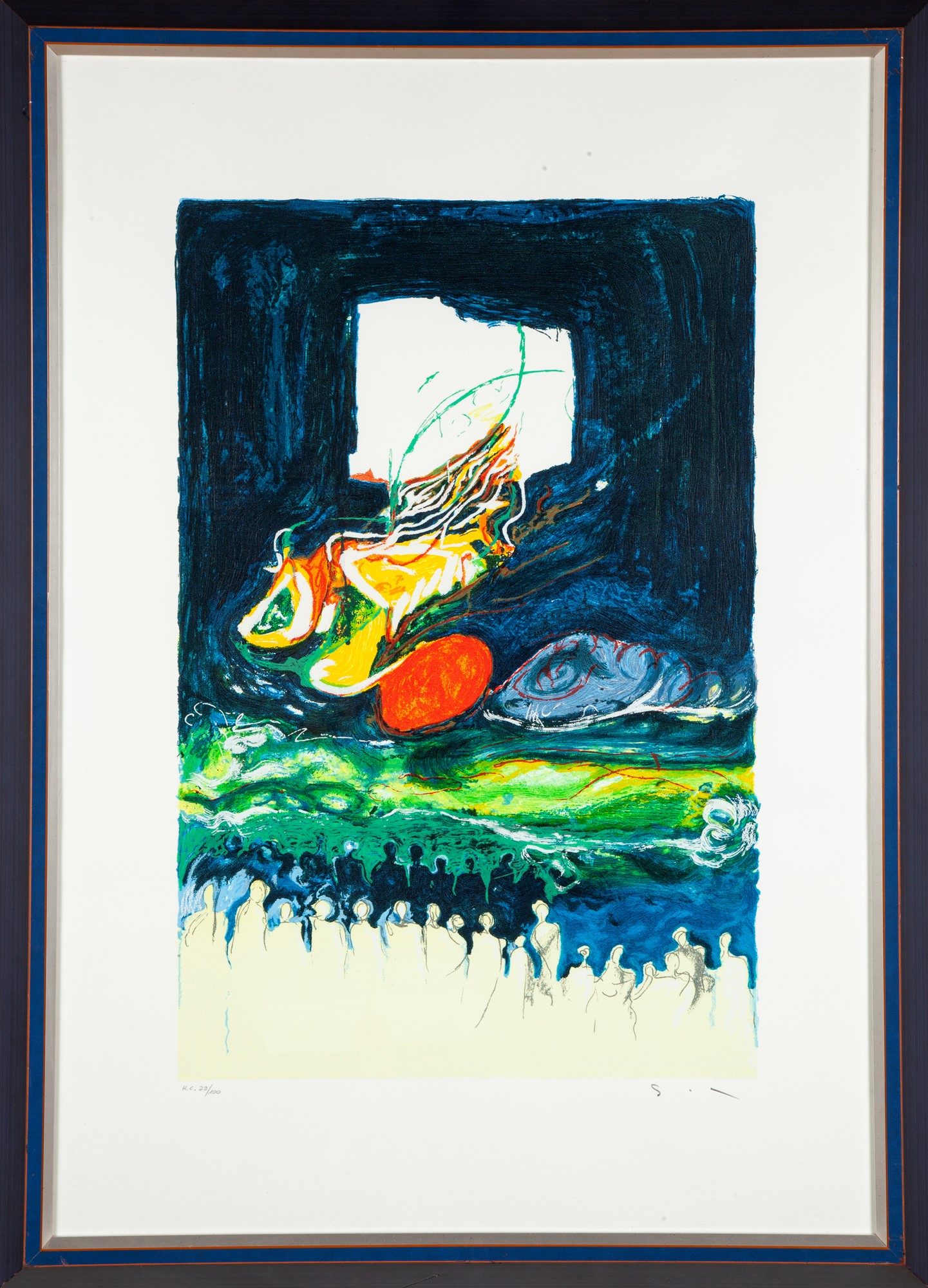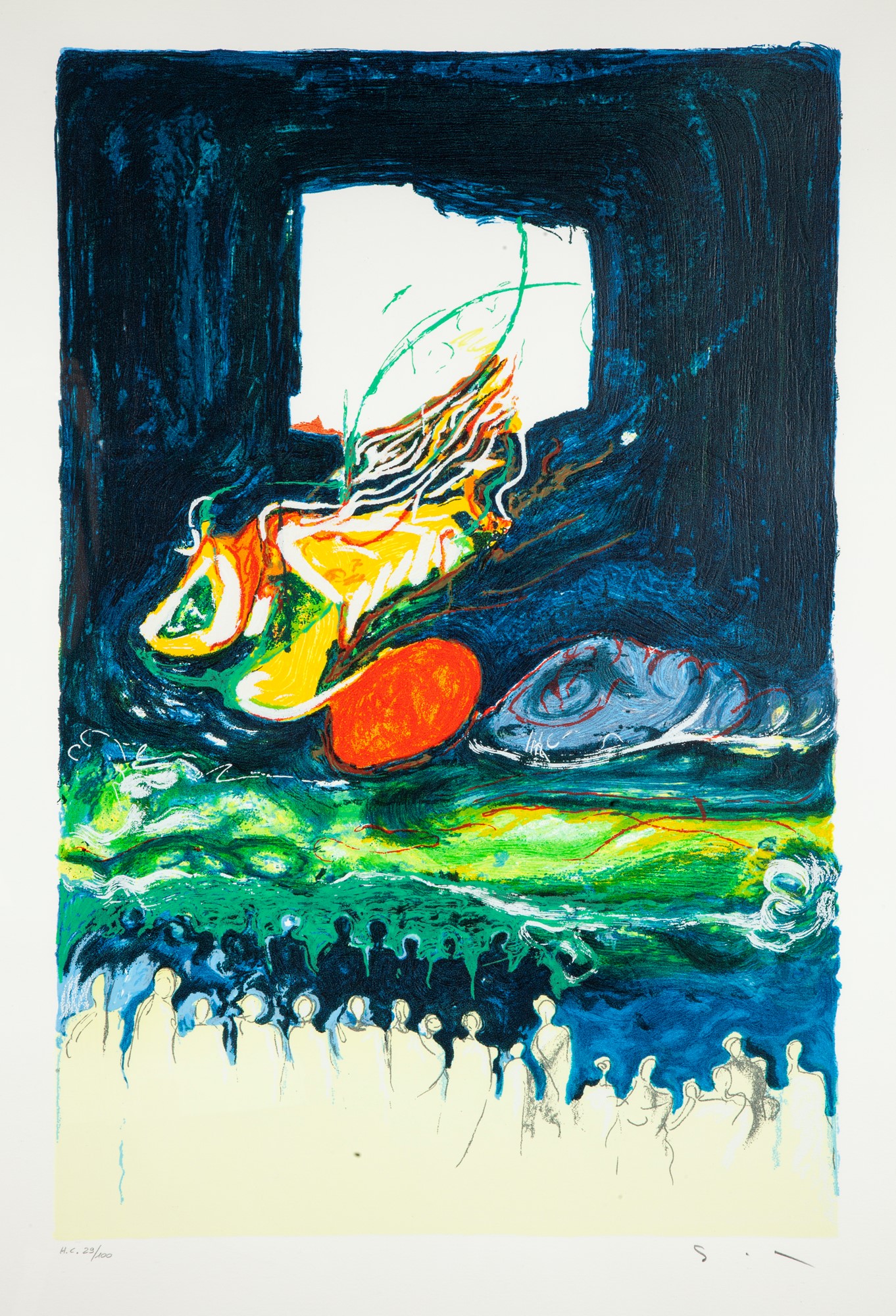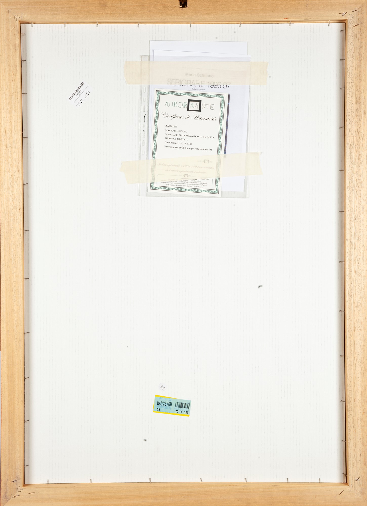 Mario Schifano Homs 1934-Roma 1998 Buio Inquinato 1996 Serigrafia materica a smalto cm 100x70 - in cornice cm 110x80 Firma e numerazione "Schifano HC 29/100". Timbro a secco "Schifano". Mario Schifano, Serigrafie 1996/7, Vol. 4, Torcualar Edizioni. Certificato di autenticità rilasciato dalla Aurora Arte