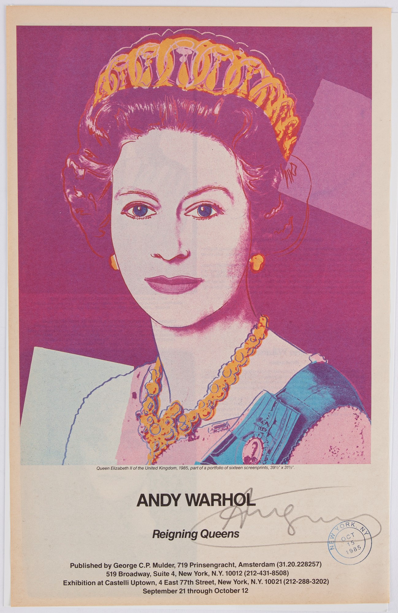 Andy Warhol Pitsburg 1928-New York 1987 Regina Elisabetta 1985 Stampa Multiplo cm 42,5x27 Stampa realizzata nel 1985 in occasione della mostra presso la galleria Castelli Uptown, New York. Firma sul fronte Certificato di autenticità rilasciato da Frank P. Garo