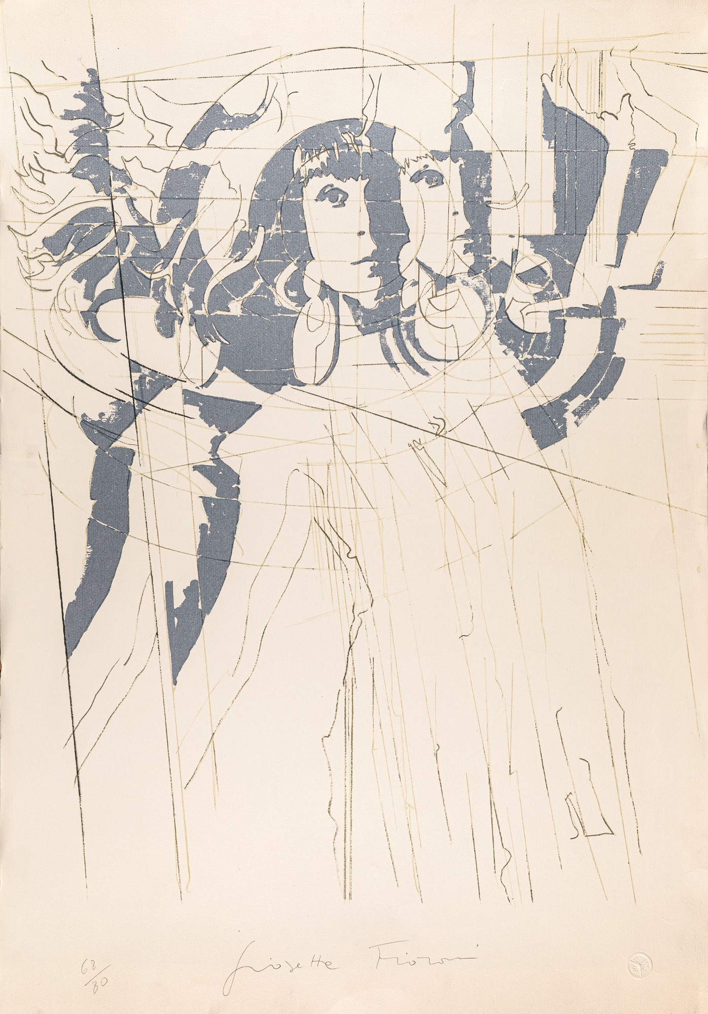 Giosetta Fioroni Roma 1932 Omaira 1981 Serigrafia cm 100x70 Firma e numerazione "Giosetta Fioroni 68/80". Timbro a secco ed etichetta dello stampatore Il Torchio Romano