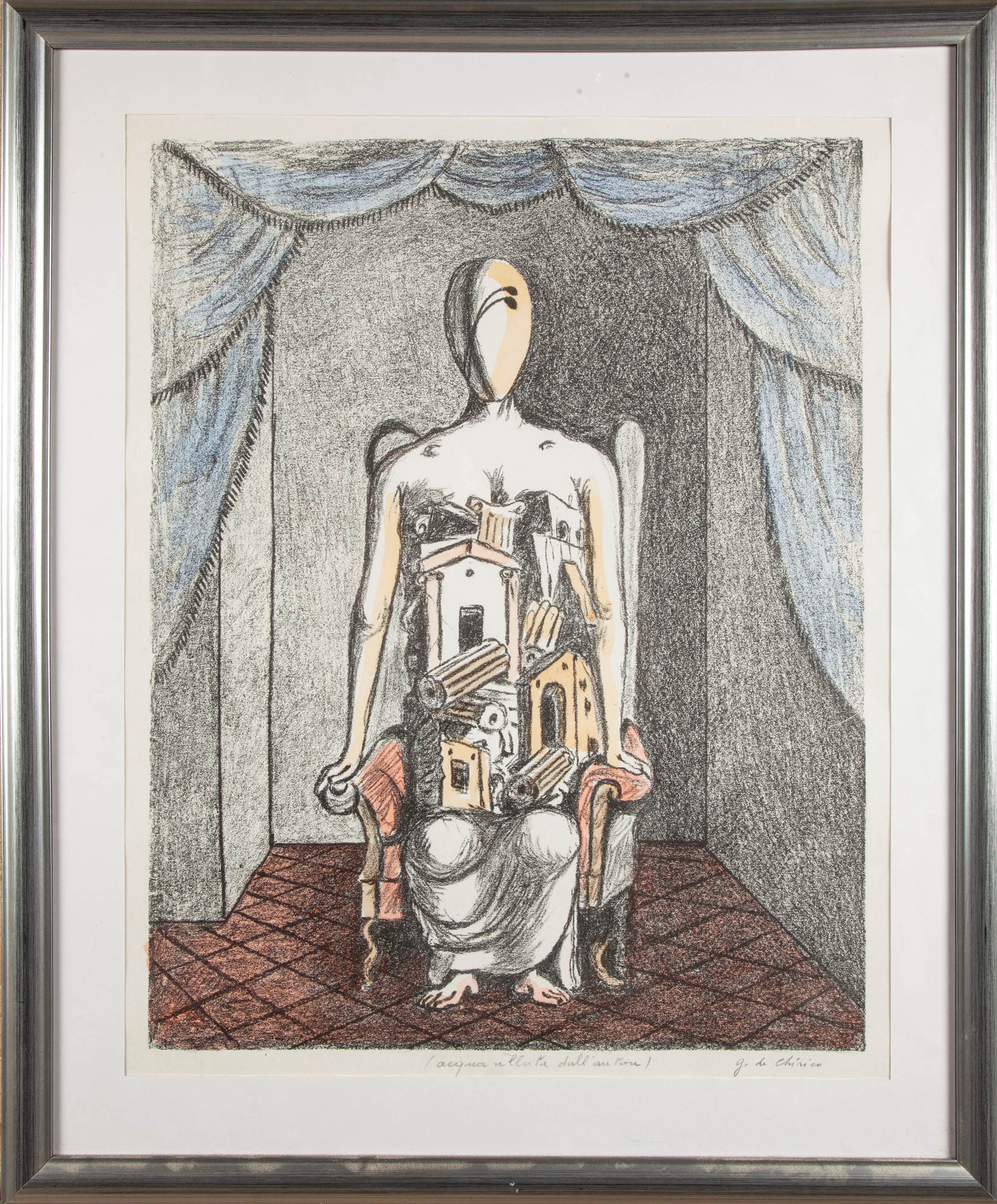 Giorgio De Chirico (Volo 1888-Roma 1978) Senza titolo Litografia acquarellata...