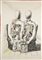 Gli Archeologi Litografia acquarellata cm 70x50 - in cornice cm 83x64 A matita, in basso, firma e titolo "Gli Archeologi, G. De Chirico. P.d.a., colorata a mano"