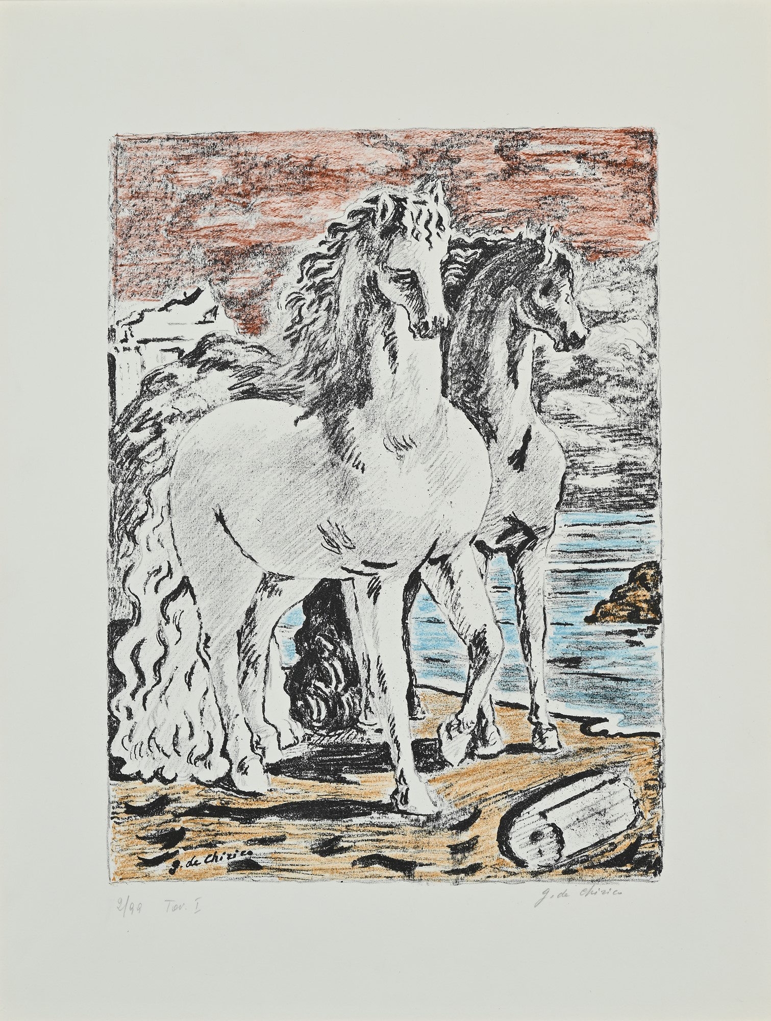 Giorgio De Chirico (Volo 1888-Roma 1978) Cavalli antichi 1966 Litografia cm...