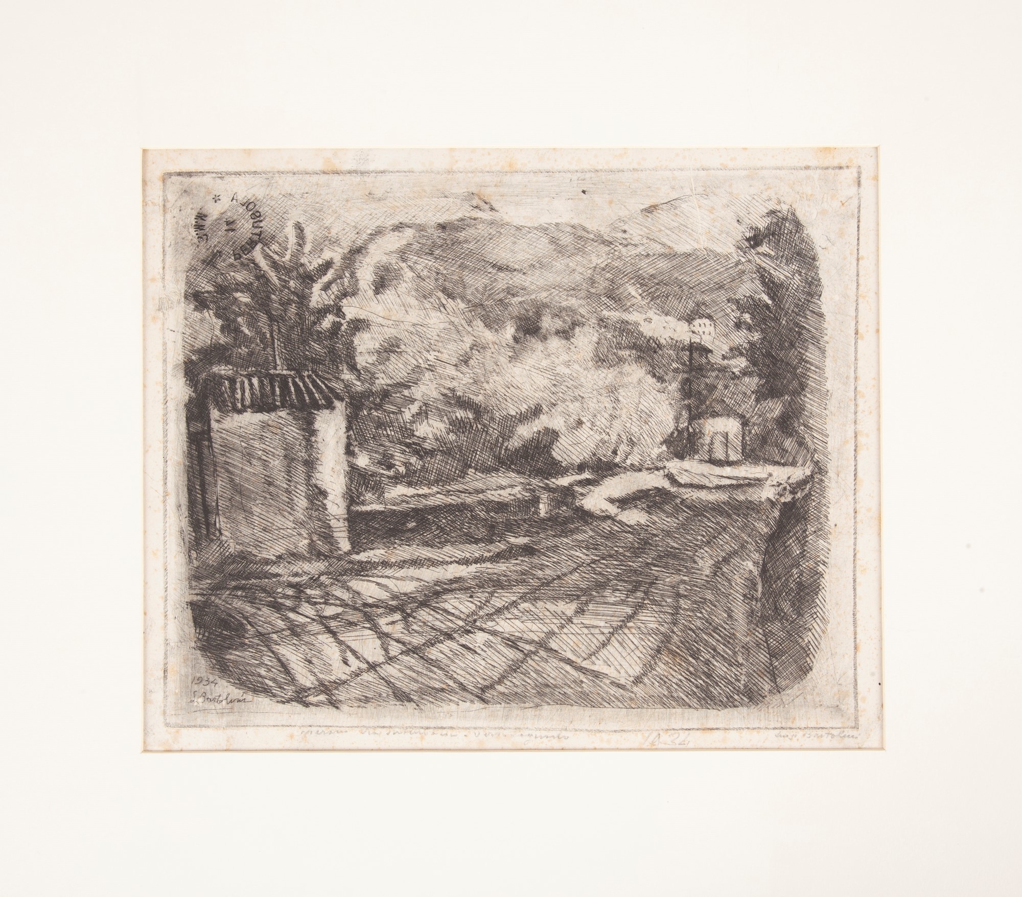 Paesaggio 1934 Acquaforte cm 30x35 Firma e data a matita in basso a destra "Luigi Bartolini 1934". In lastra firma e data "1934 / L. Bartolini".