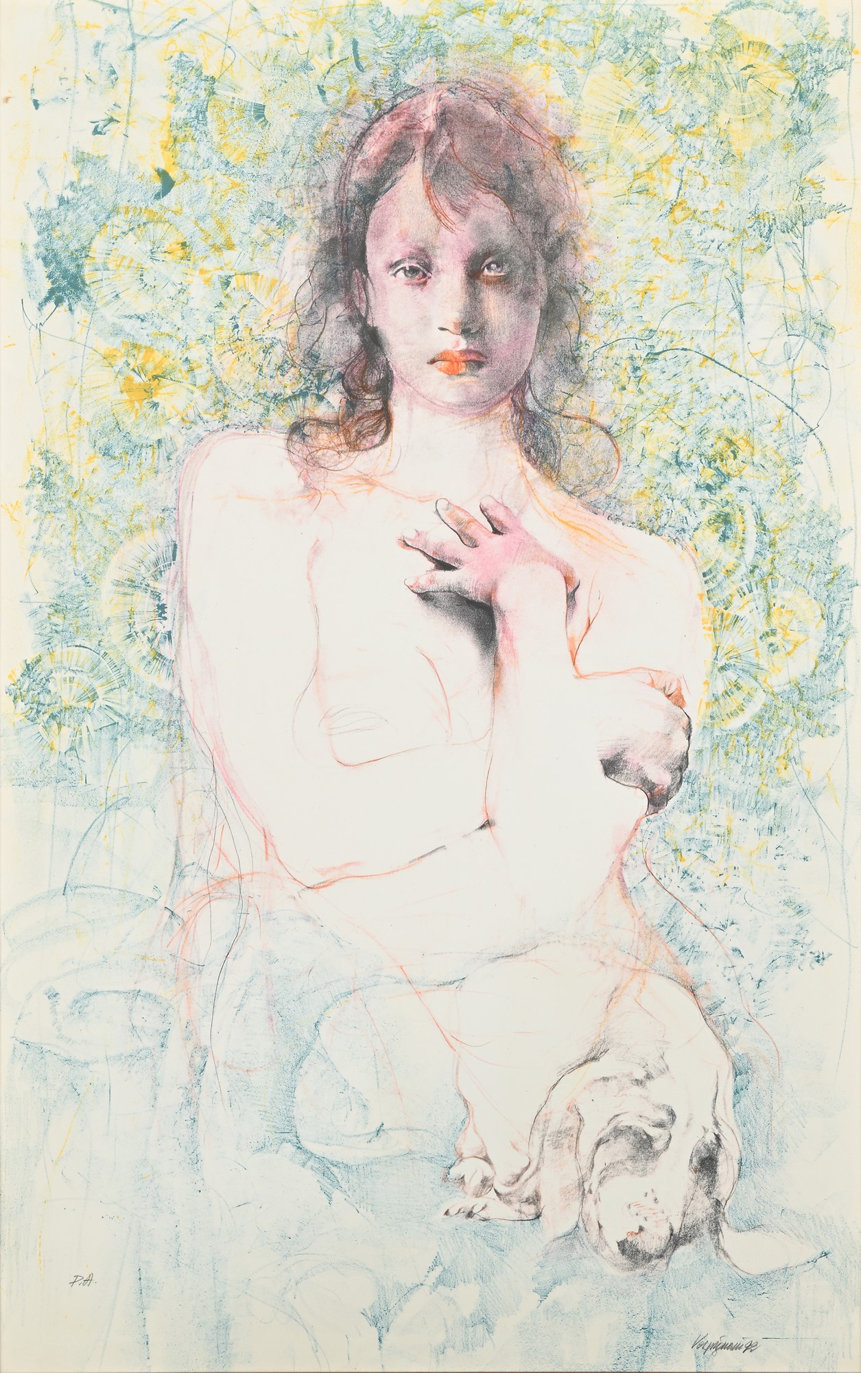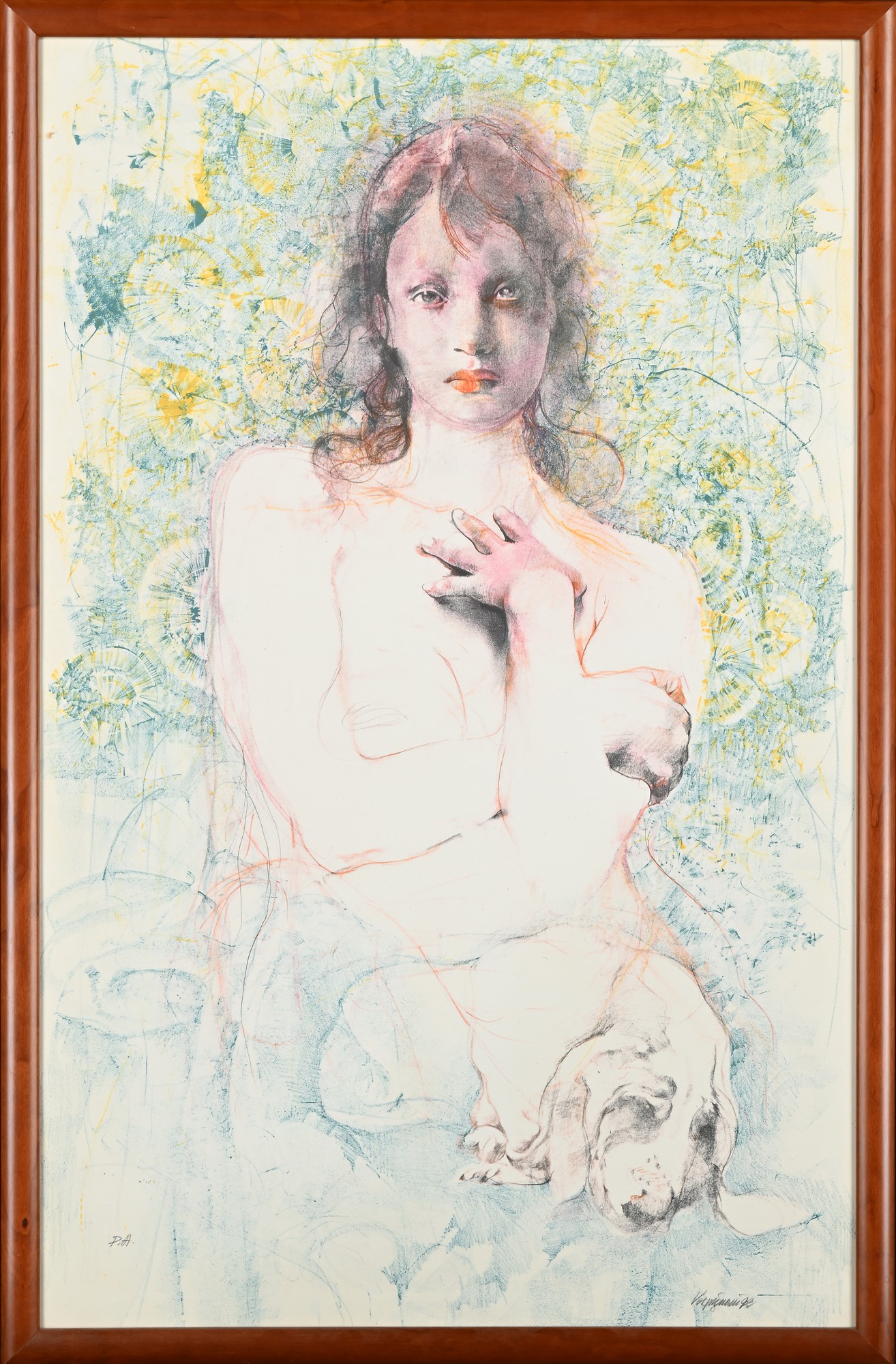 Renzo Vespignani (Roma 1924-Roma 2001) Fanciulla con cane 1992 Litografia cm...