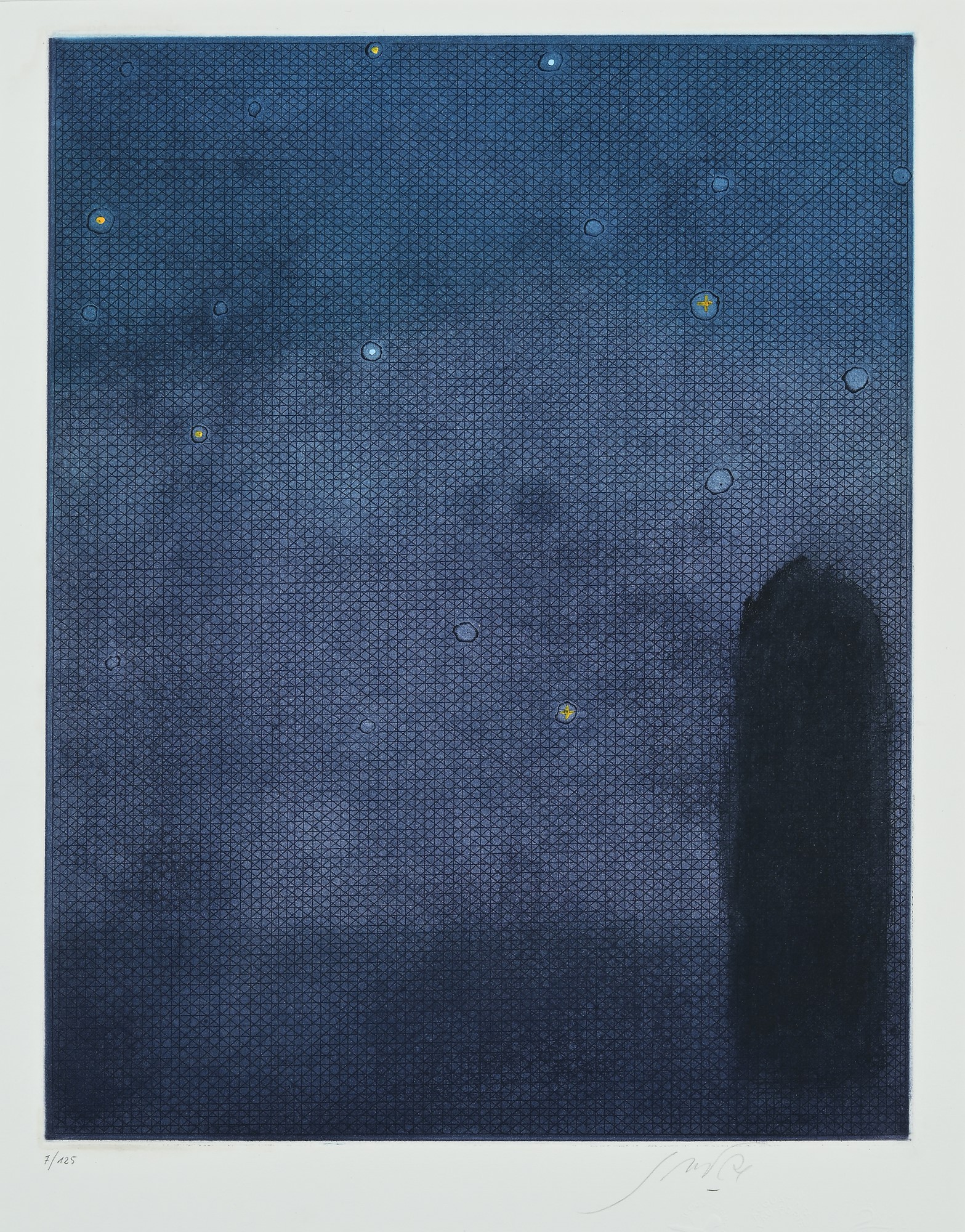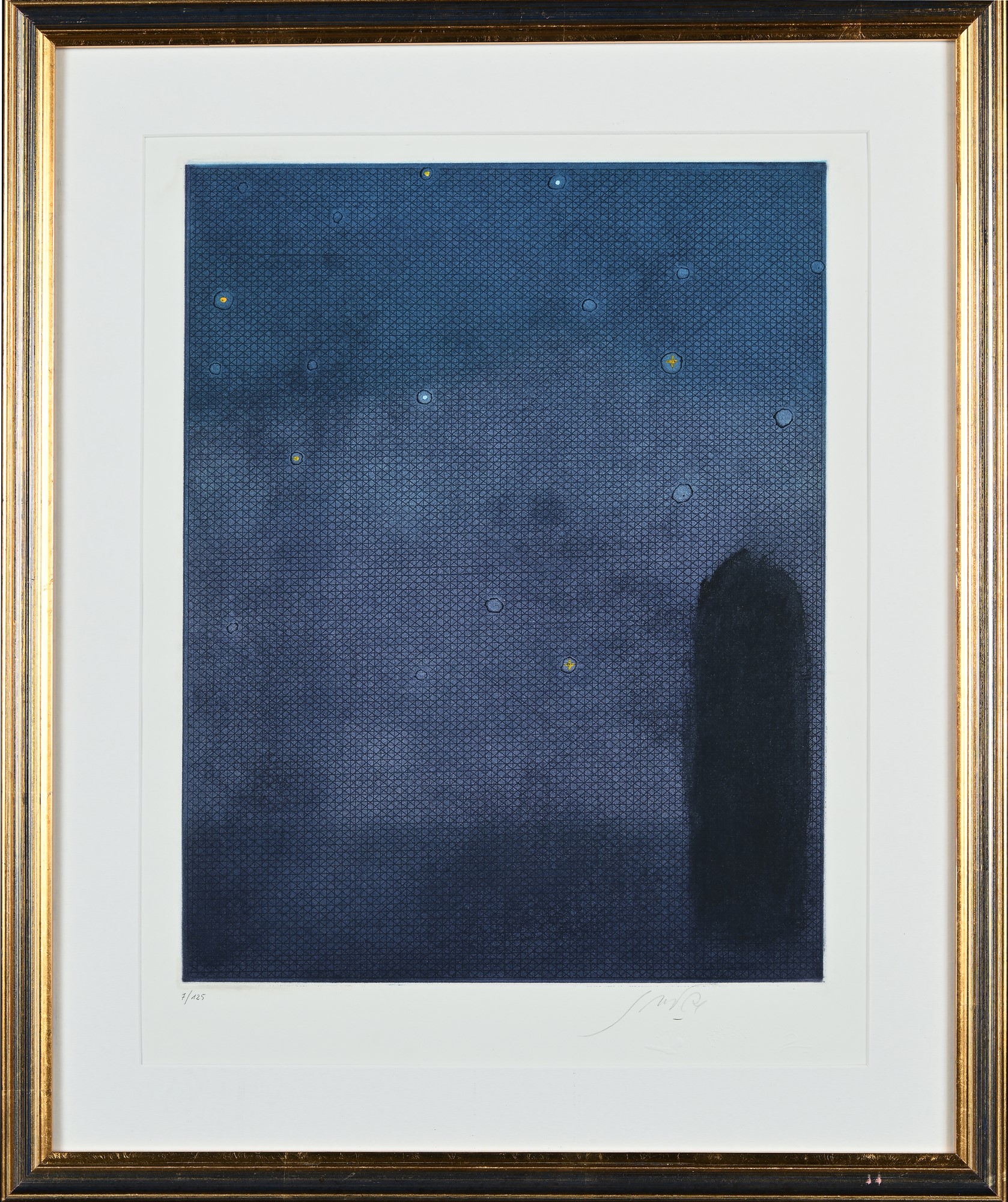 Il cipresso di Taormina 2000 Acquaforte/acquatinta cm 50x40 - in cornice cm 64x53 Firma e numerazione "Guccione, 7/125". Timbri a secco degli stampatori Piero Guccione, Galleria Nazionale d'Arte Moderna, Il Cigno Edizioni Roma Certificato di autenticità su fotografia rilasciato dalla Stamperia d'Arte Il Cigno, Roma