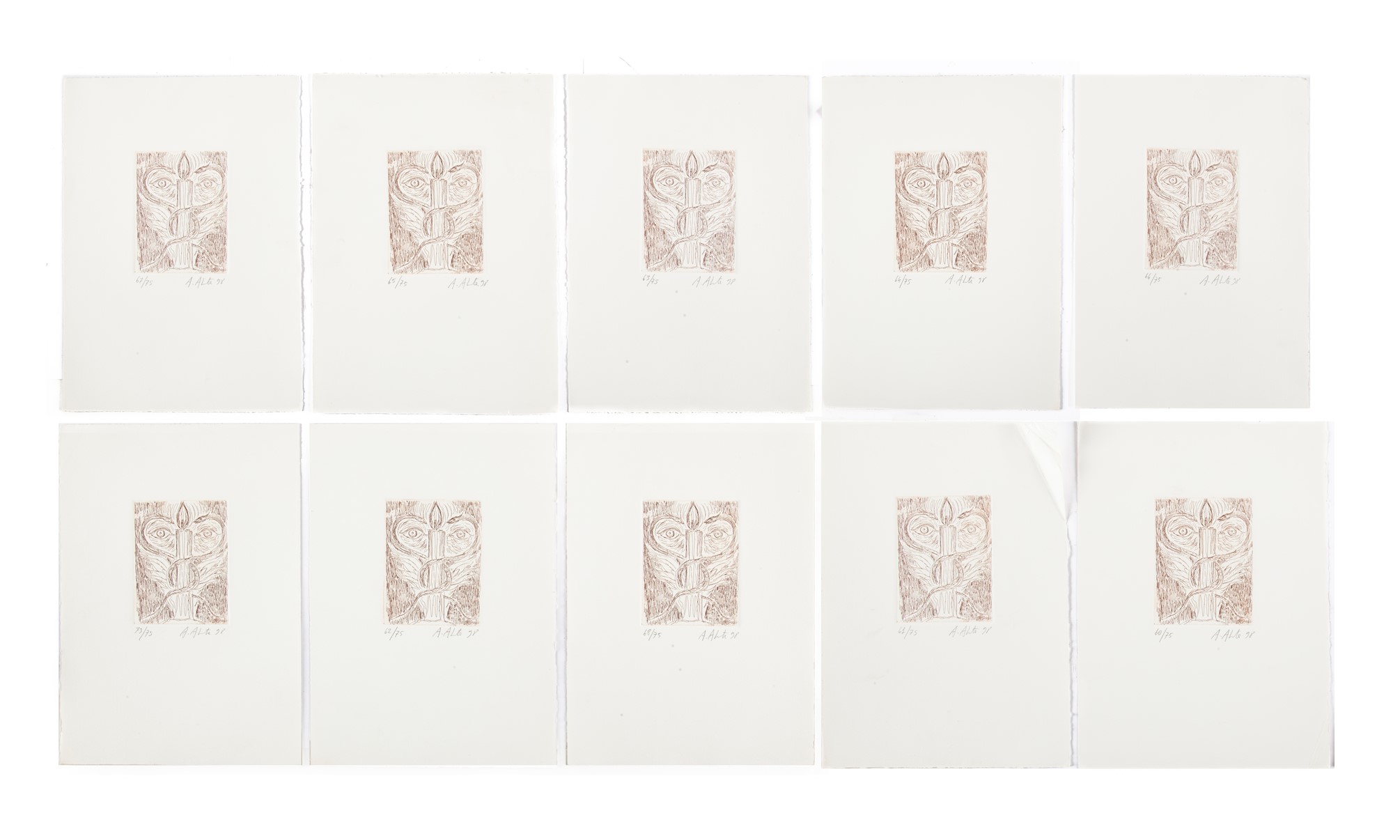 10 incisioni di Alberto Abate cm 35x25 l'una. Tutte firmate e datate "A.Abate '98". Numerate a matita sul fronte