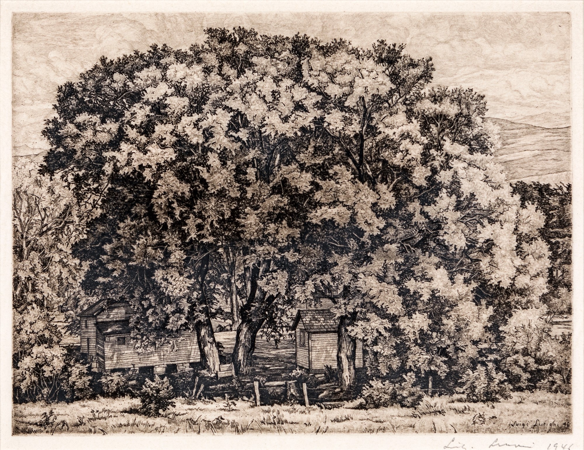 The big willows 1946 Acquaforte cm 26x34,5 lastra