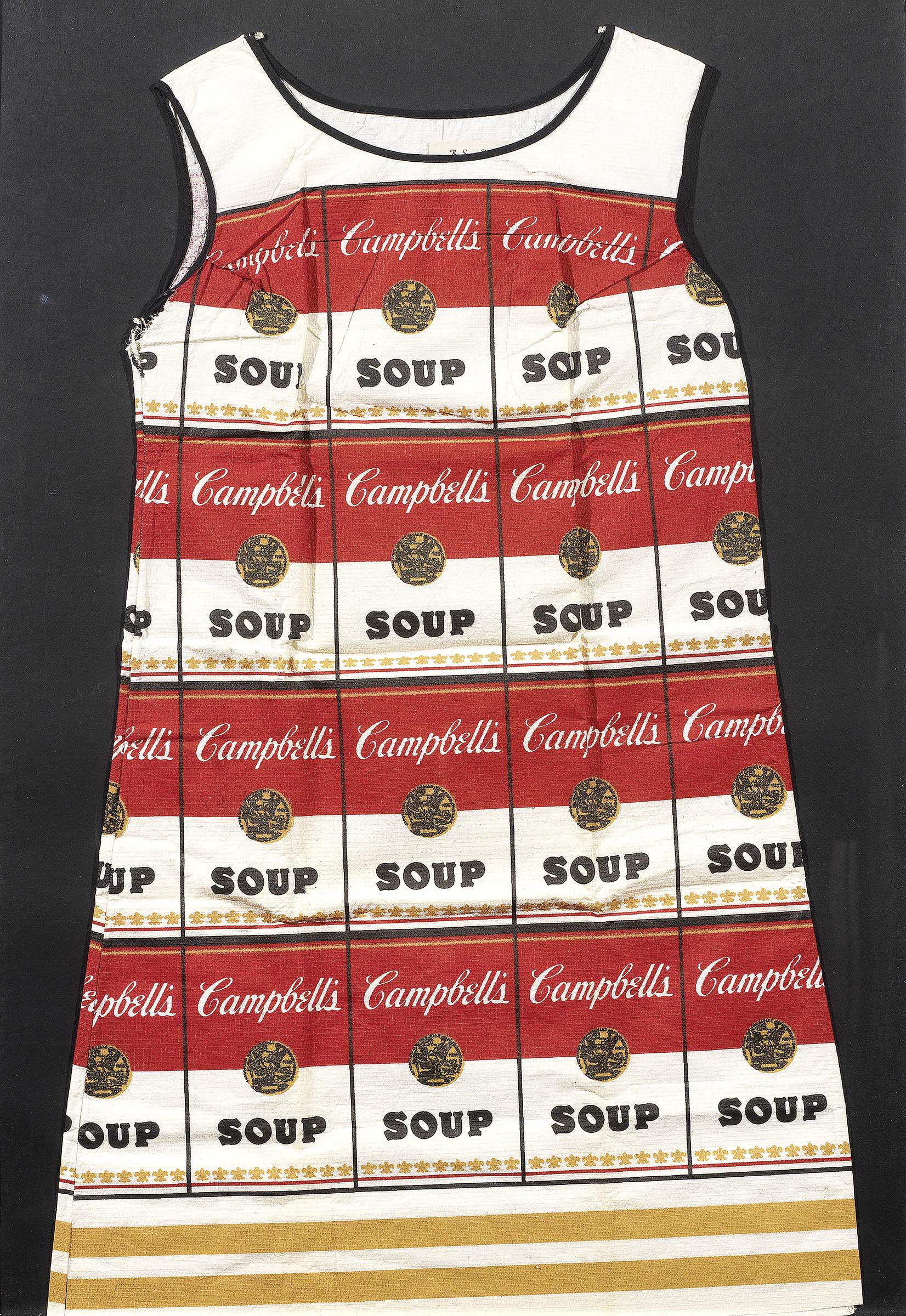 Andy Warhol Pittsburgh 1928 - New York 1987 The souper dress Serigrafia a colori su tessuto, cm. 97x61 Titolo su un'etichetta: The souper dress.