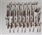 PARTE DI SERVIZIO DI POSATE IN ARGENTO E MANICI IN ARGENTO TITOLO 800 PESO ARGENTO GR.600 ca. - LIEVI DIFETTI