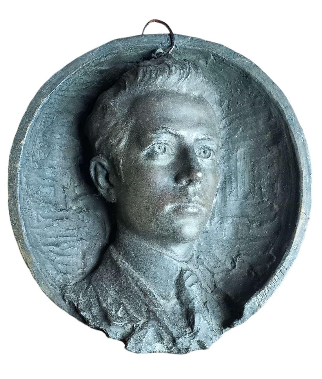 ANNIBALE MONTI (1875-1941) VOLTO MASCHILE - SCULTURA IN BRONZO DIAMETRO CM.45 FIRMATO IN BASSO A DESTRA