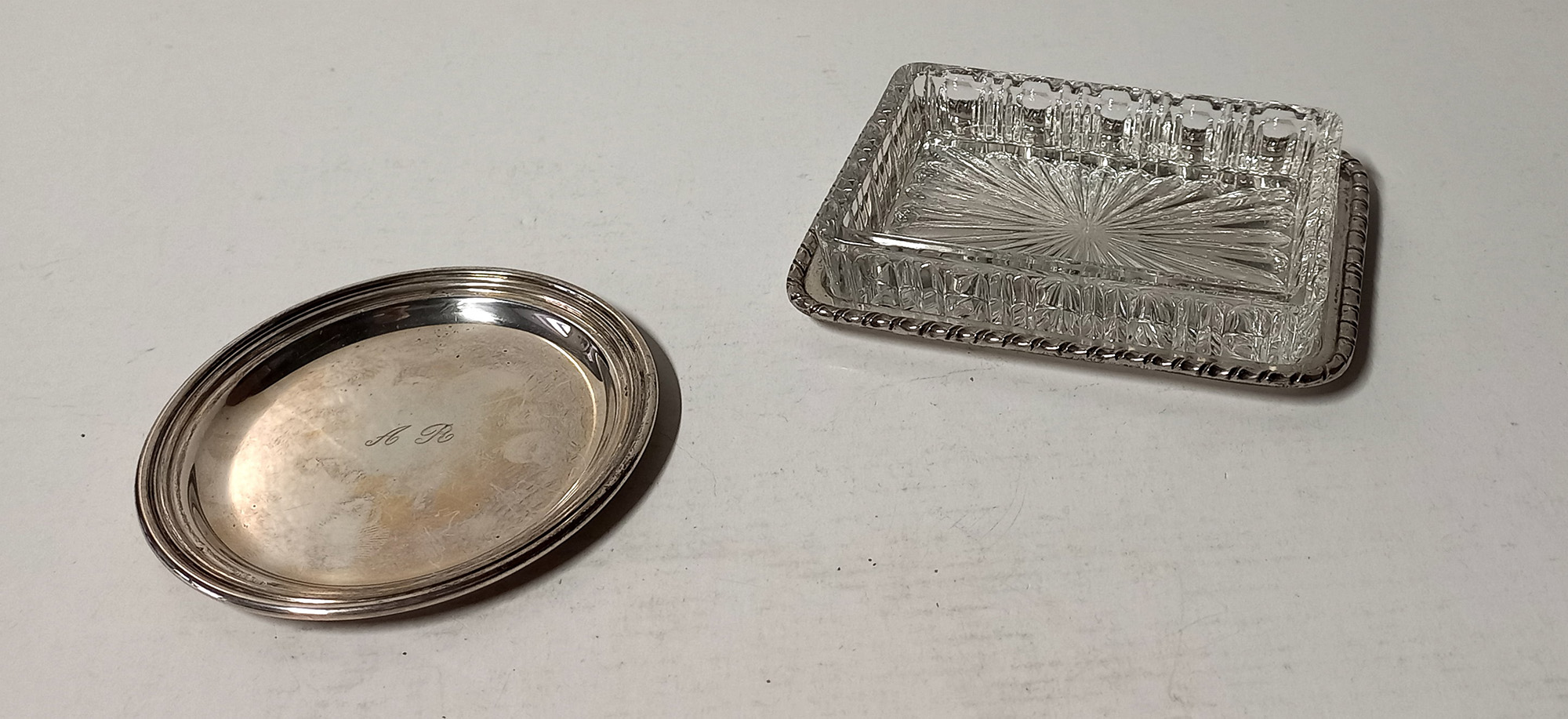 PIATTINO E CIOTOLINA IN CRISTALLO E ARGENTO TITOLO 800 PESO GR.55
